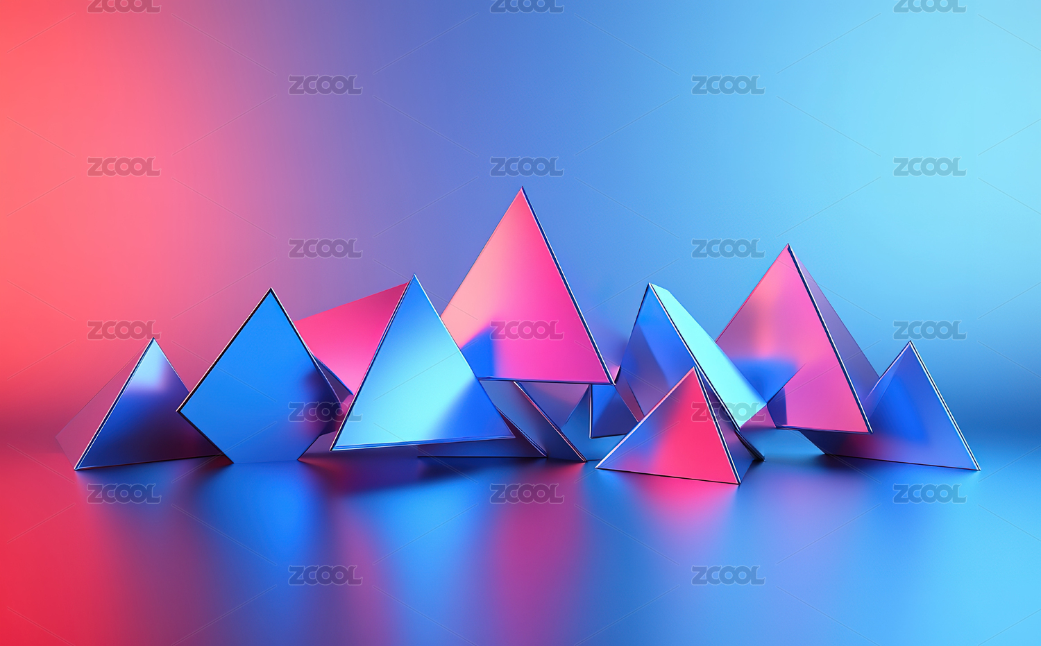背景,美感,aigc,对比,几何,晶体,数字艺术,展示,蓝红,渐变色