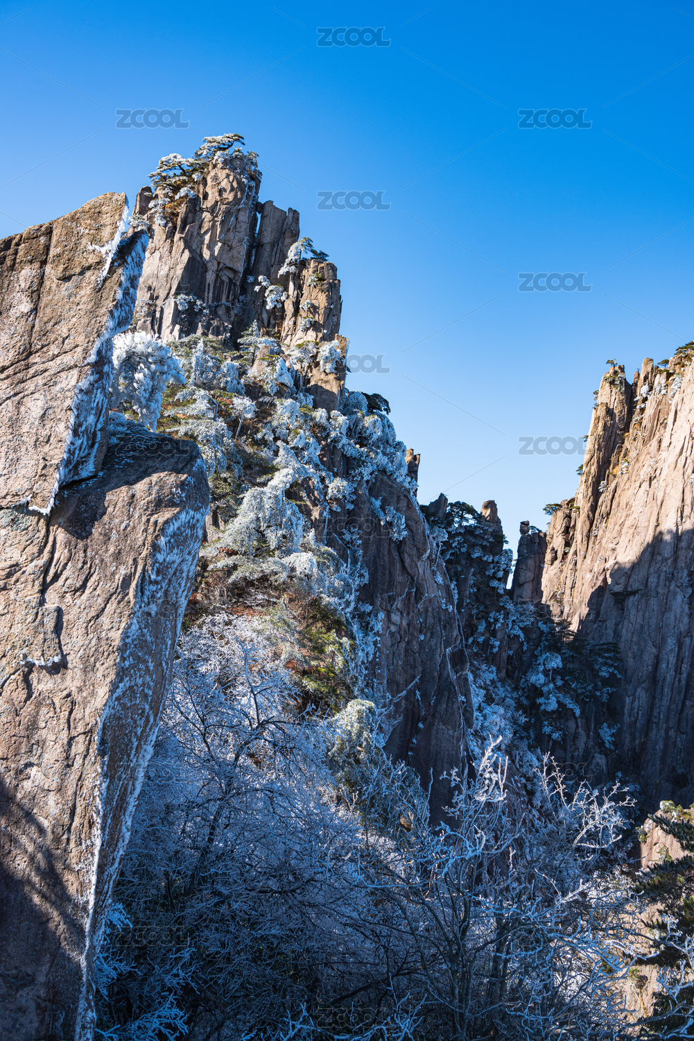 中国安徽黄山风景区始信峰冬季雾凇景观