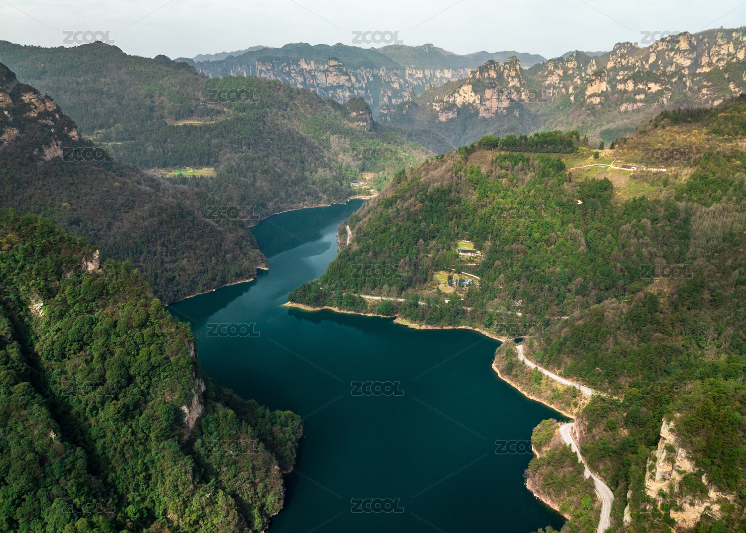 湖南张家界武陵源索溪湖航拍山峰自然风光
