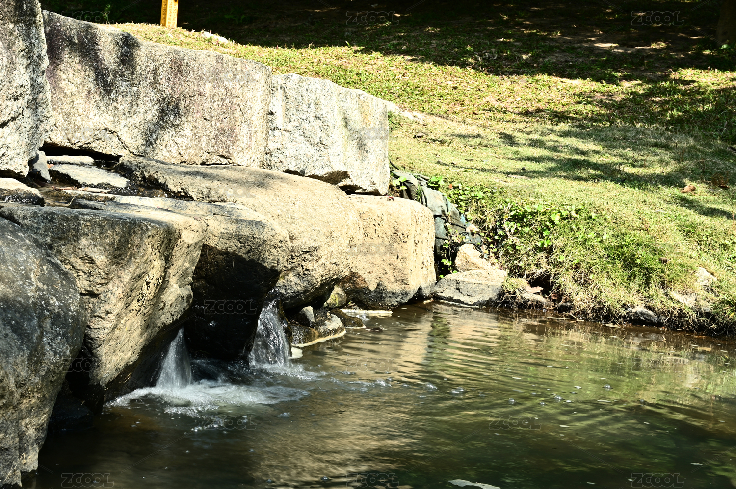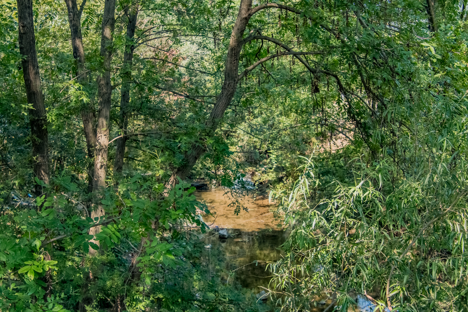 公园绿植包围的溪流