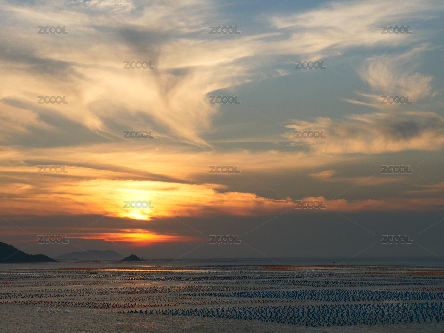 风光,风景,日落,晚霞,落日,水面,海上日落,渔船,渔业,海平面
