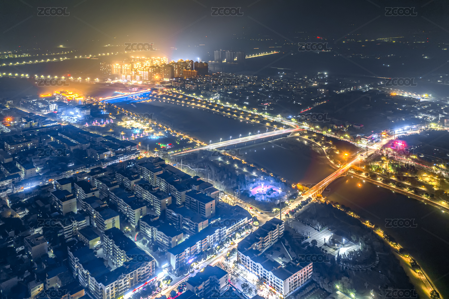 航拍,夜景,城区,灯光秀,霓虹,五彩斑斓,高楼林立,建筑,道路,路灯