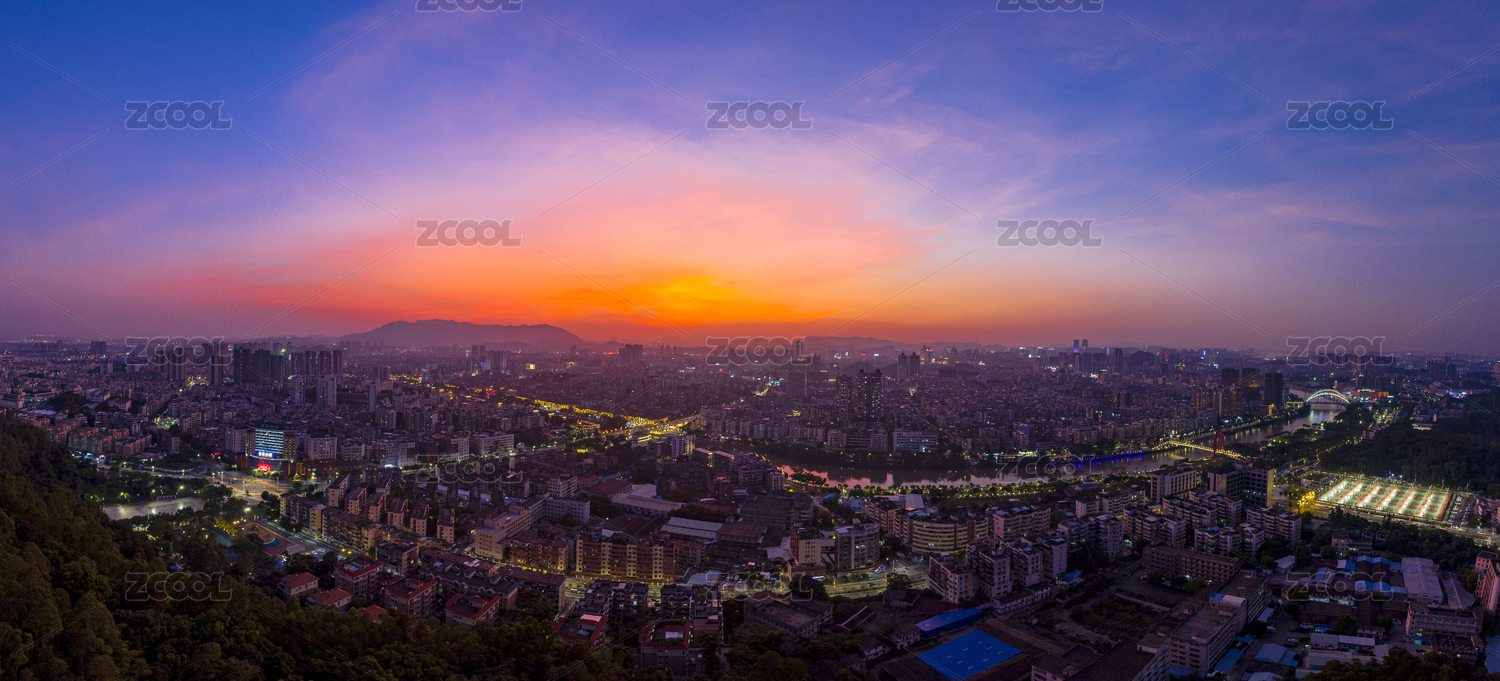 远景,户外,黄昏,灯光,河流,天际线,城市景观,建筑物,广场,草坪