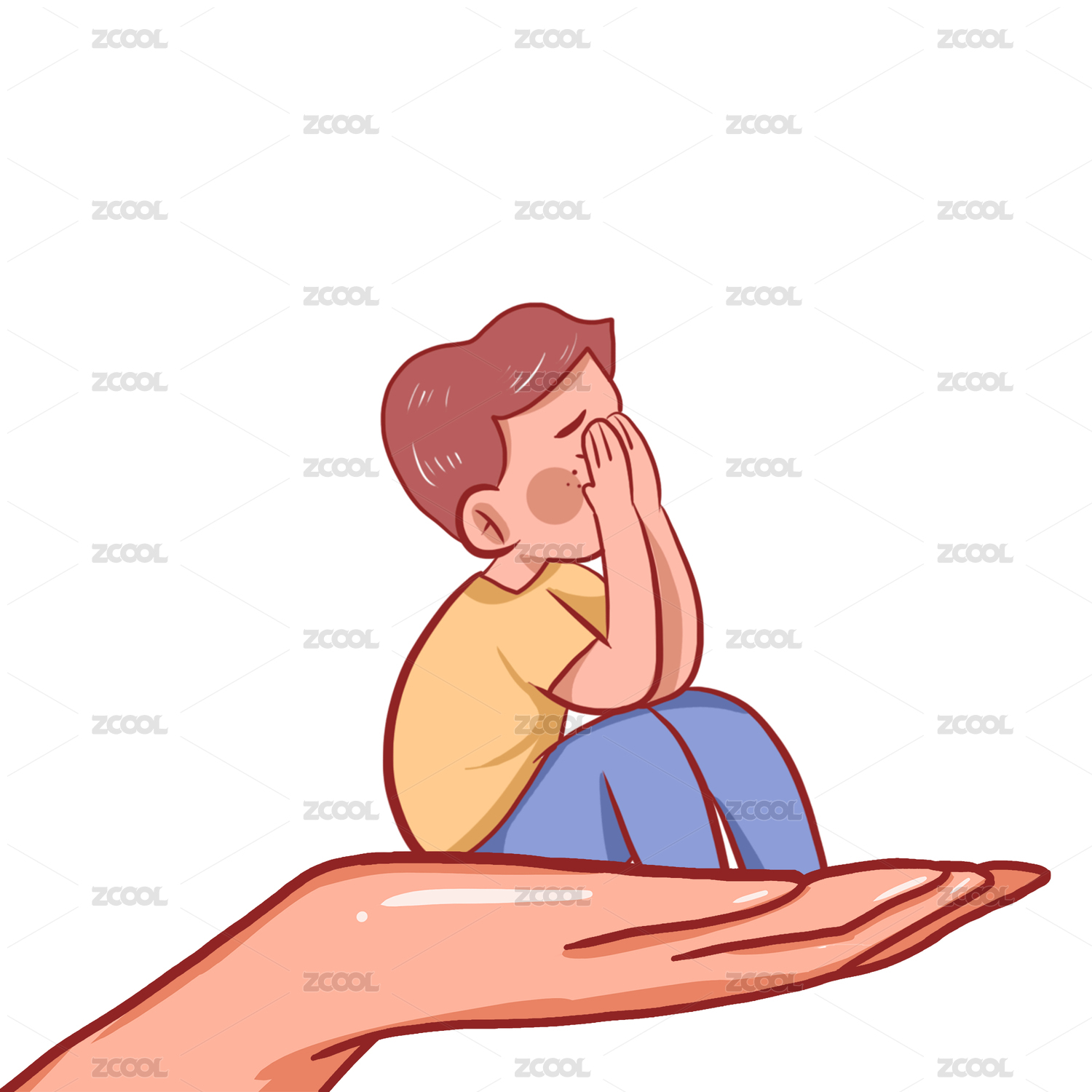 一个被悲伤笼罩的捂脸男孩子矢量插画