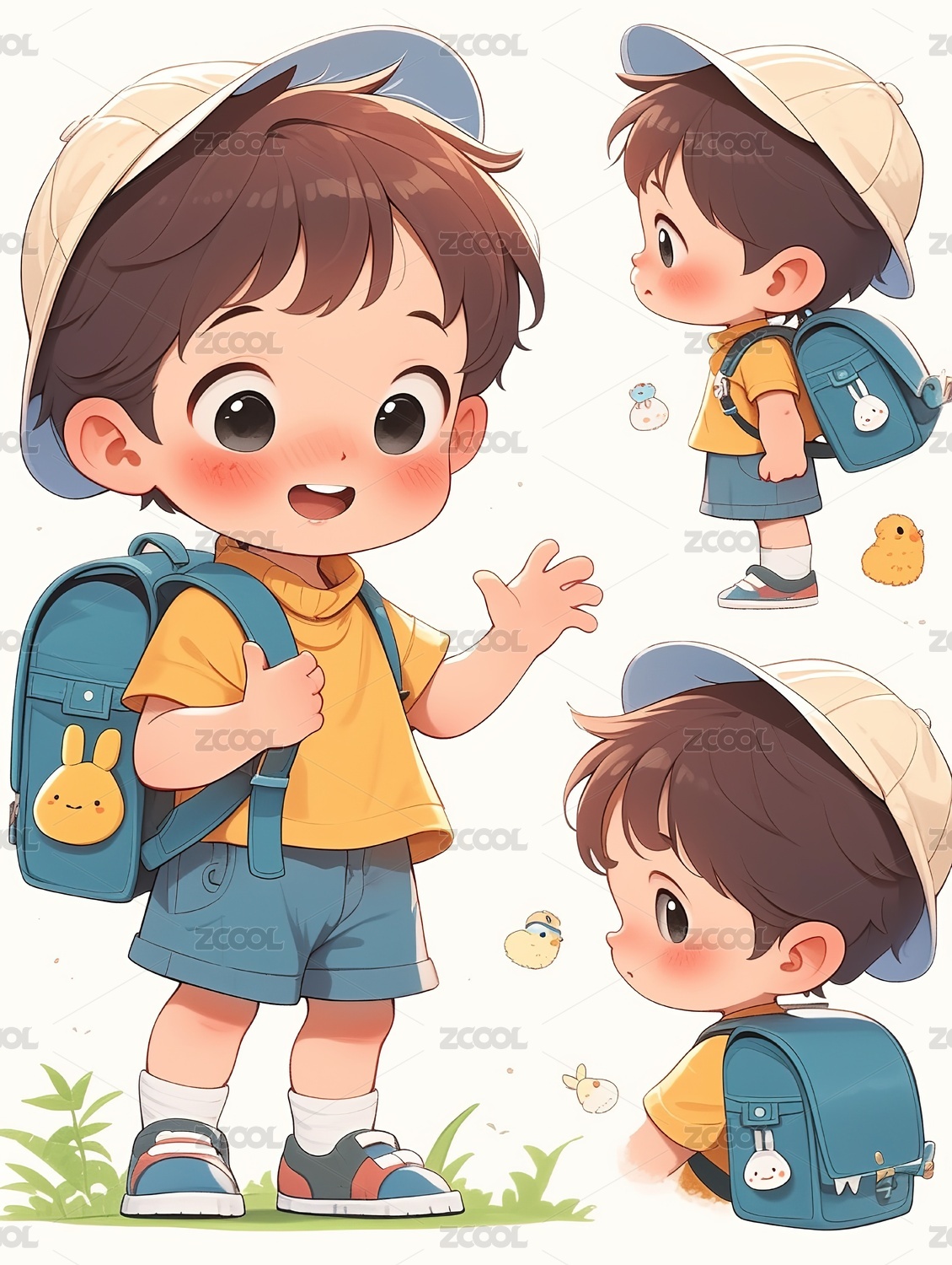 男孩背着书包插画