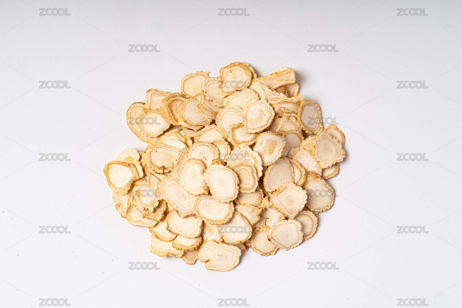 放在白色背景上的中药材黄芪片