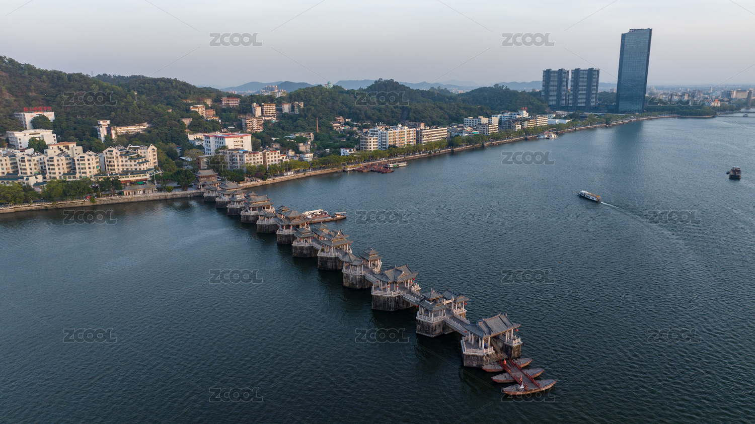 中国广东潮州广济桥滨江风光
