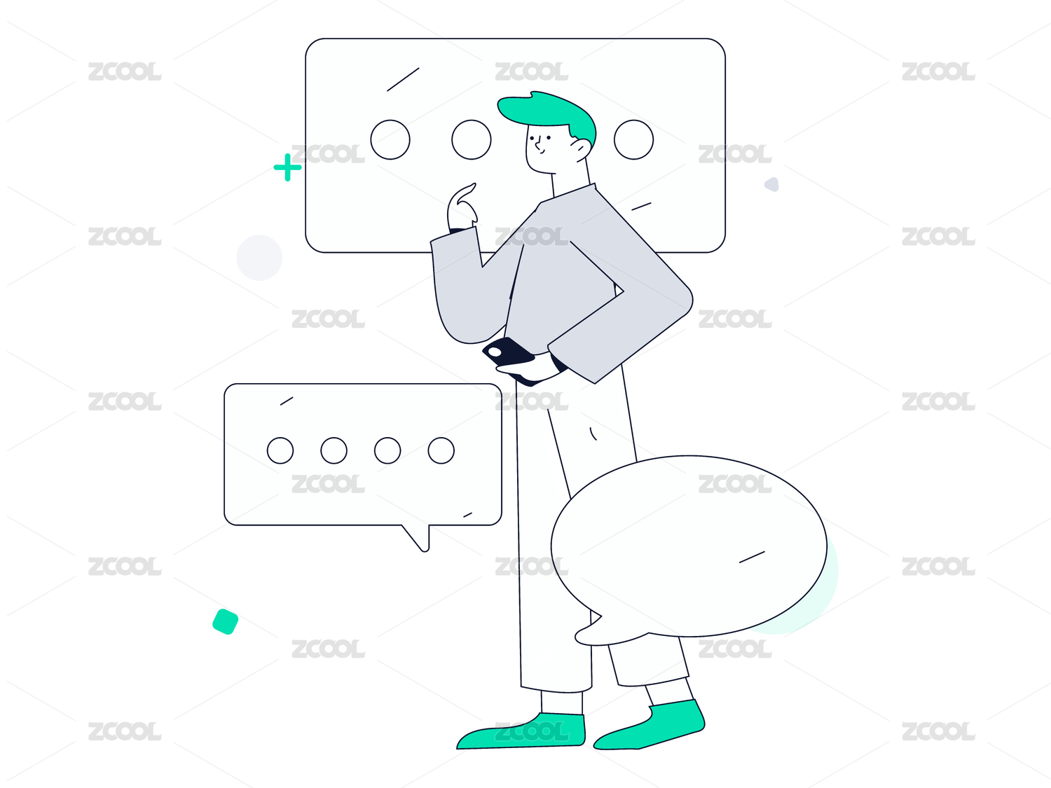 虚拟的人物社交沟通概念商业扁平矢量手绘插