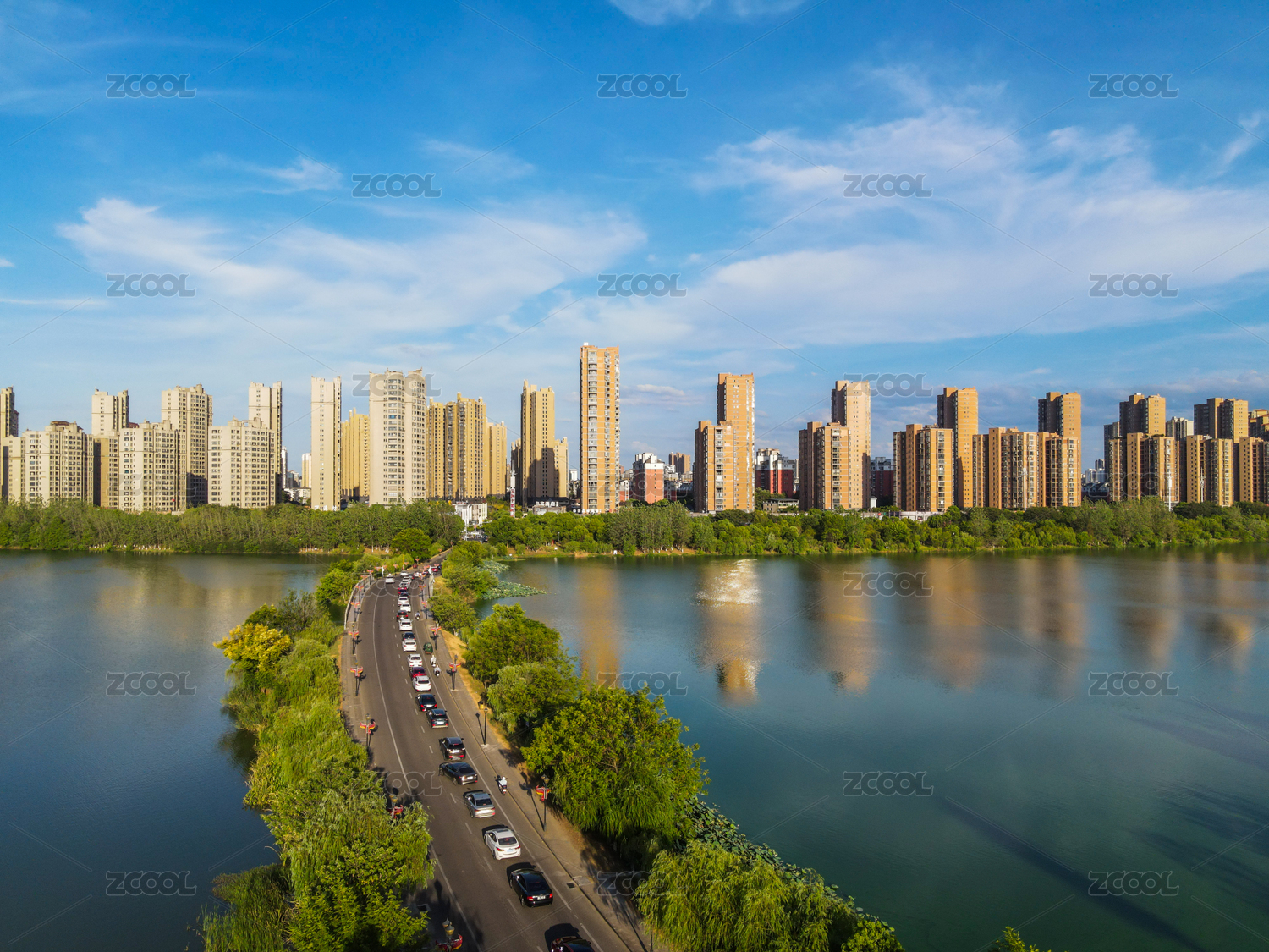 湖南衡阳湘江东洲岛夏日城市风光航拍