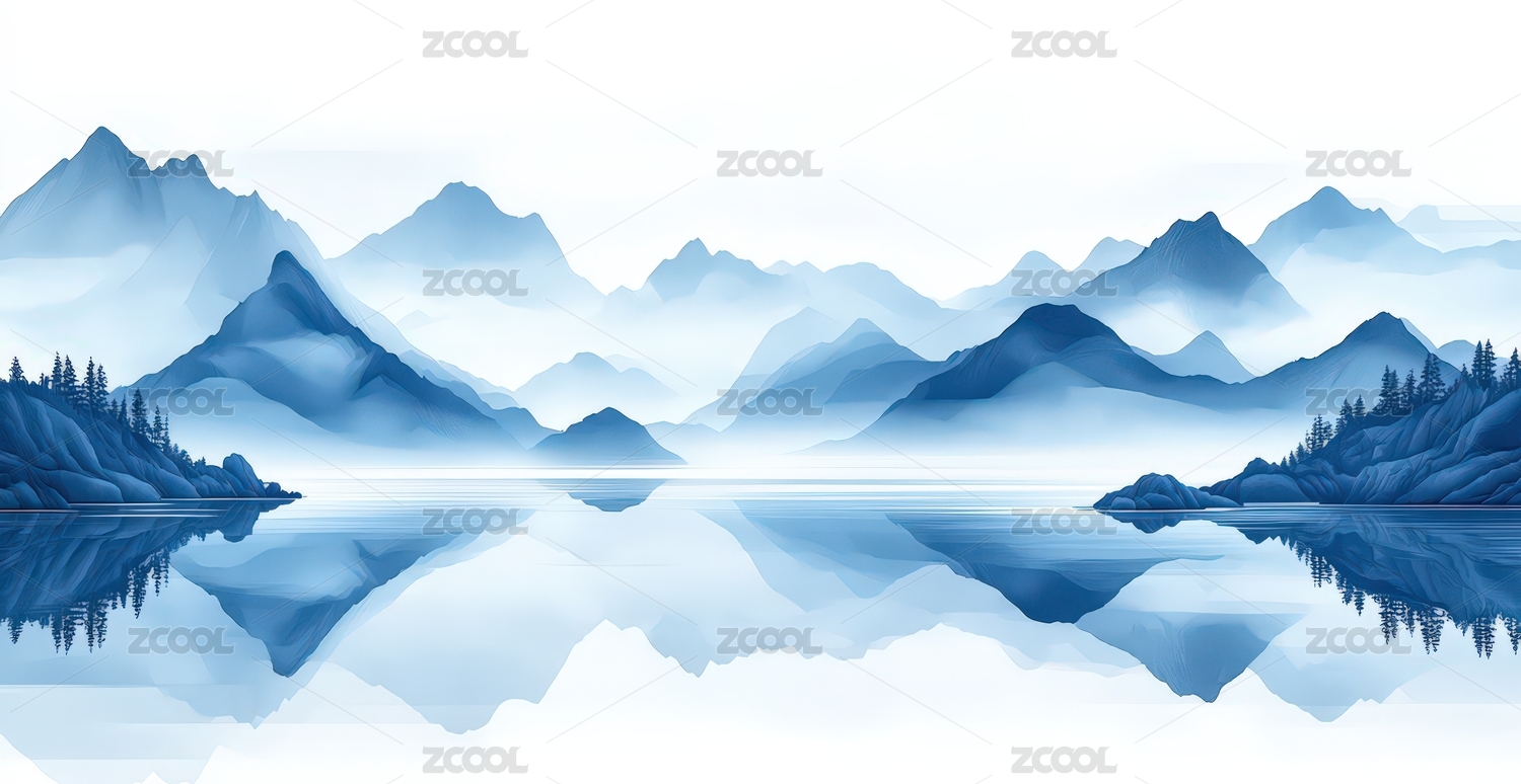 风景画,唯美,意境,空灵,简约,山水,青绿,风格,特色,国风