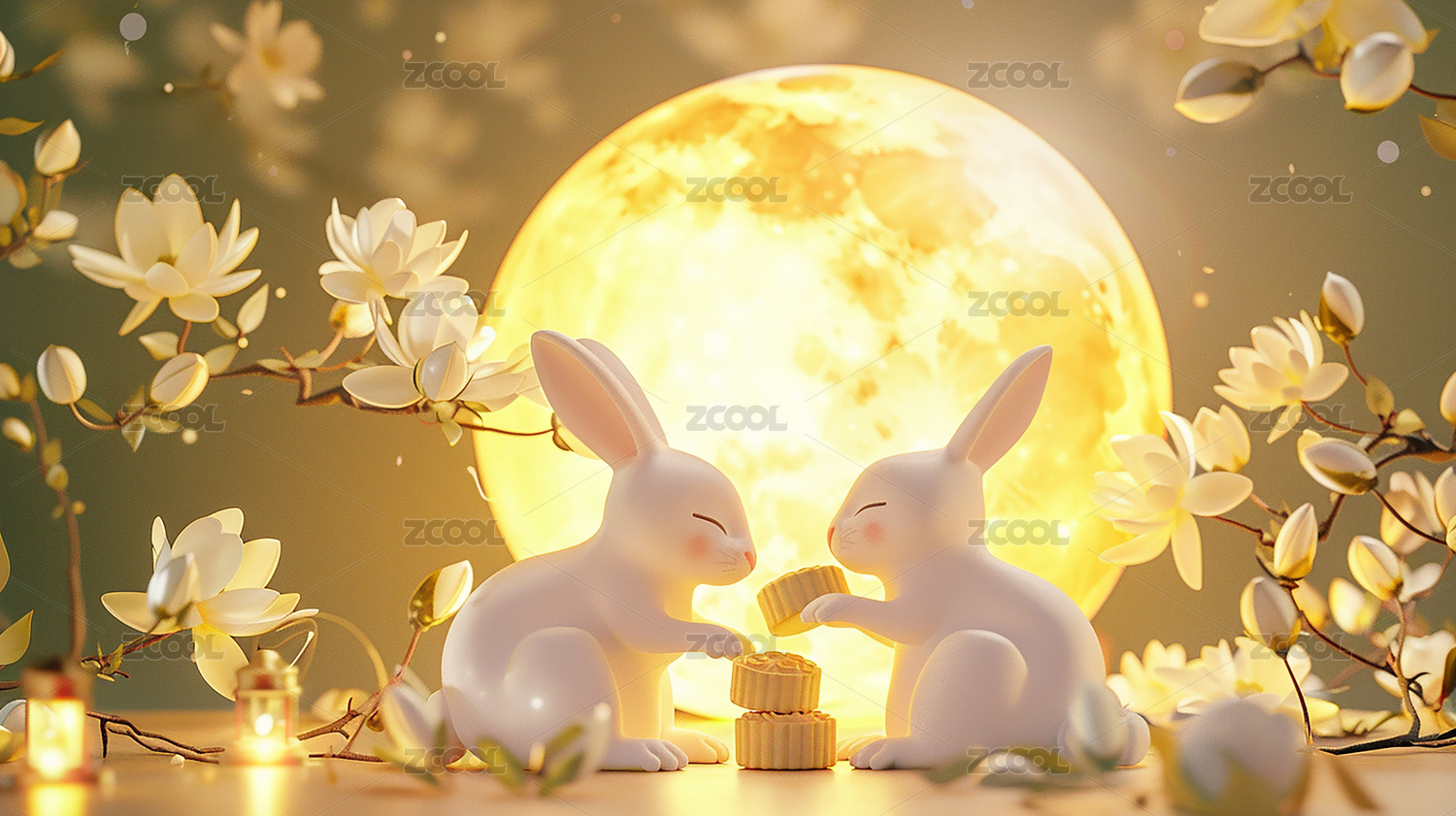 兔子玉兔月亮灯笼可爱月饼3D立体风格