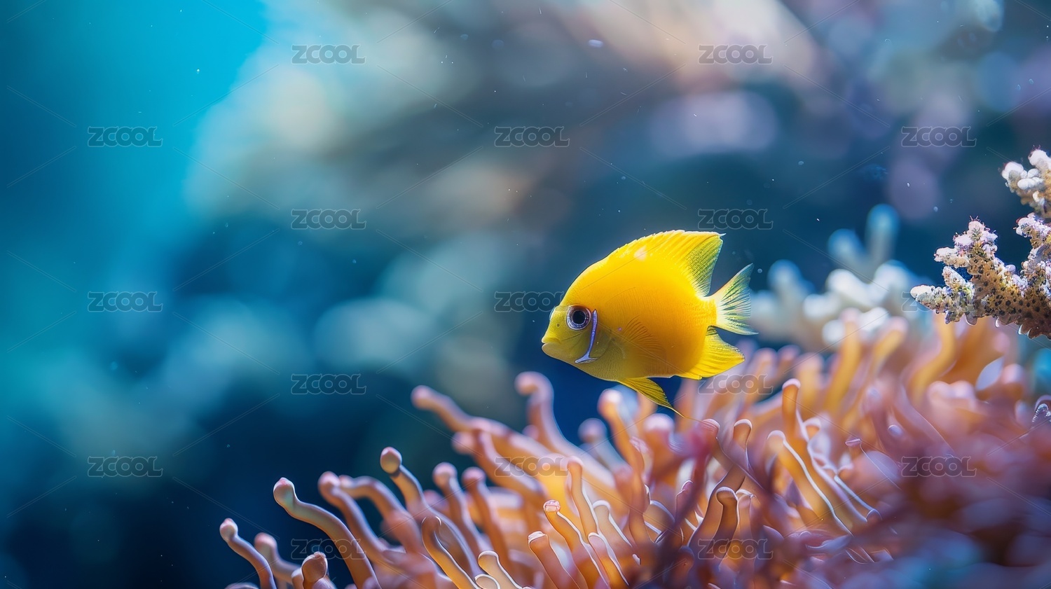 海洋珊瑚群里一只小鱼在游动