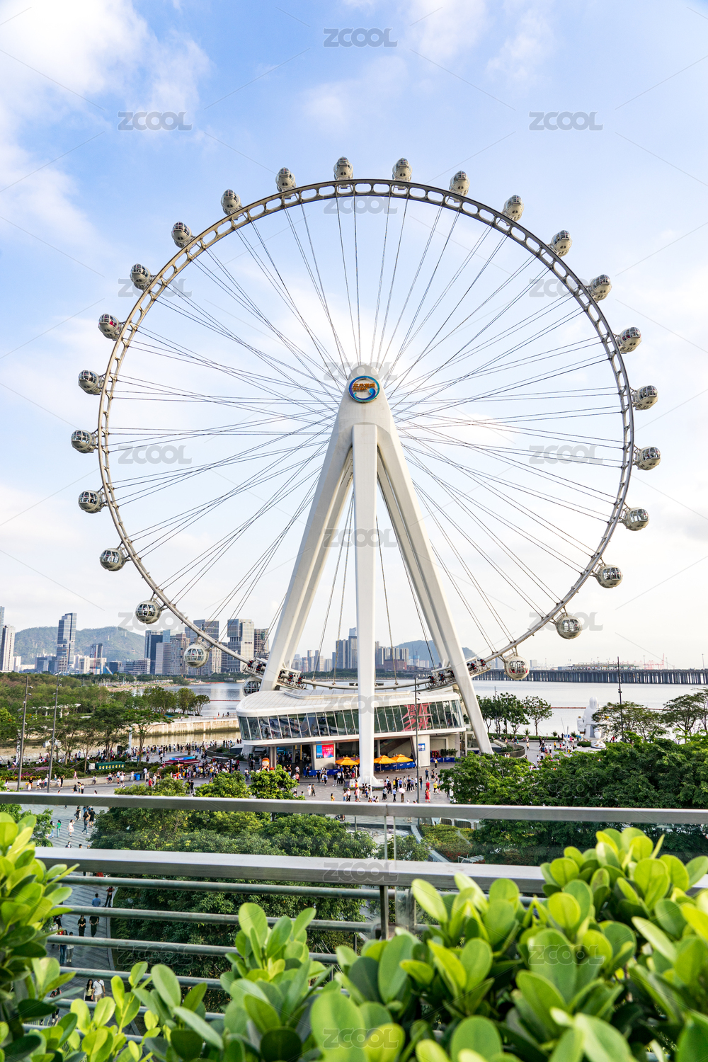 深圳前海欢乐港湾公园摩天轮蓝天白云