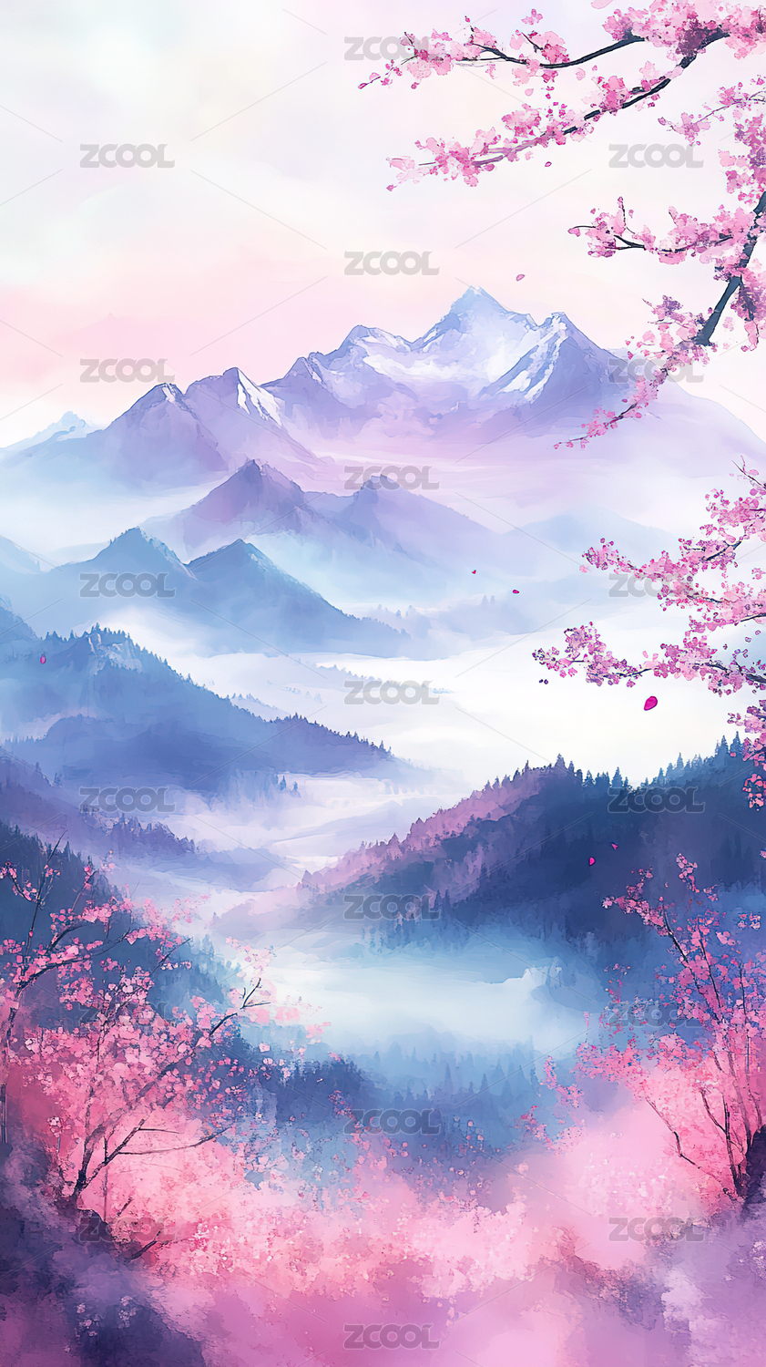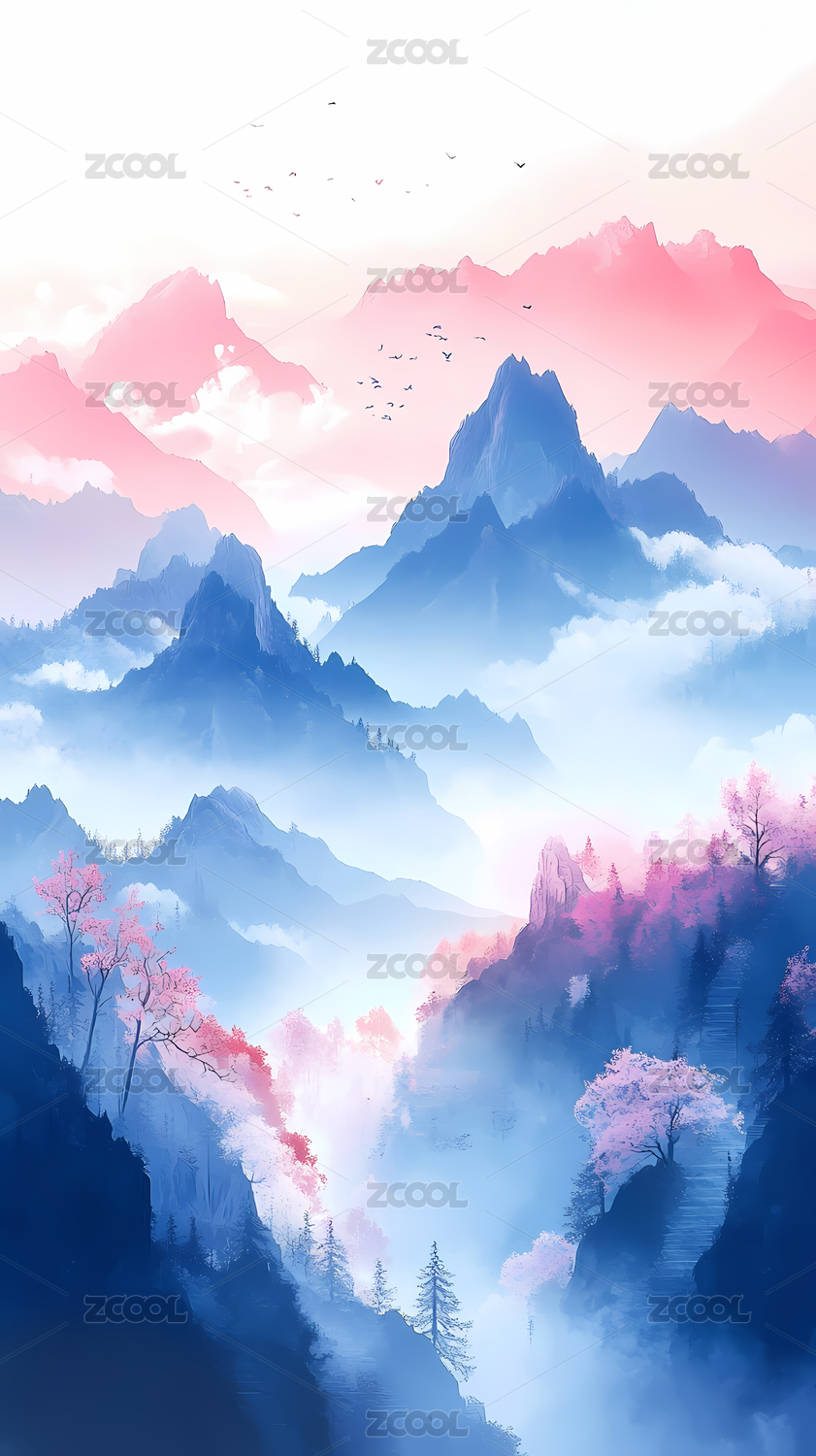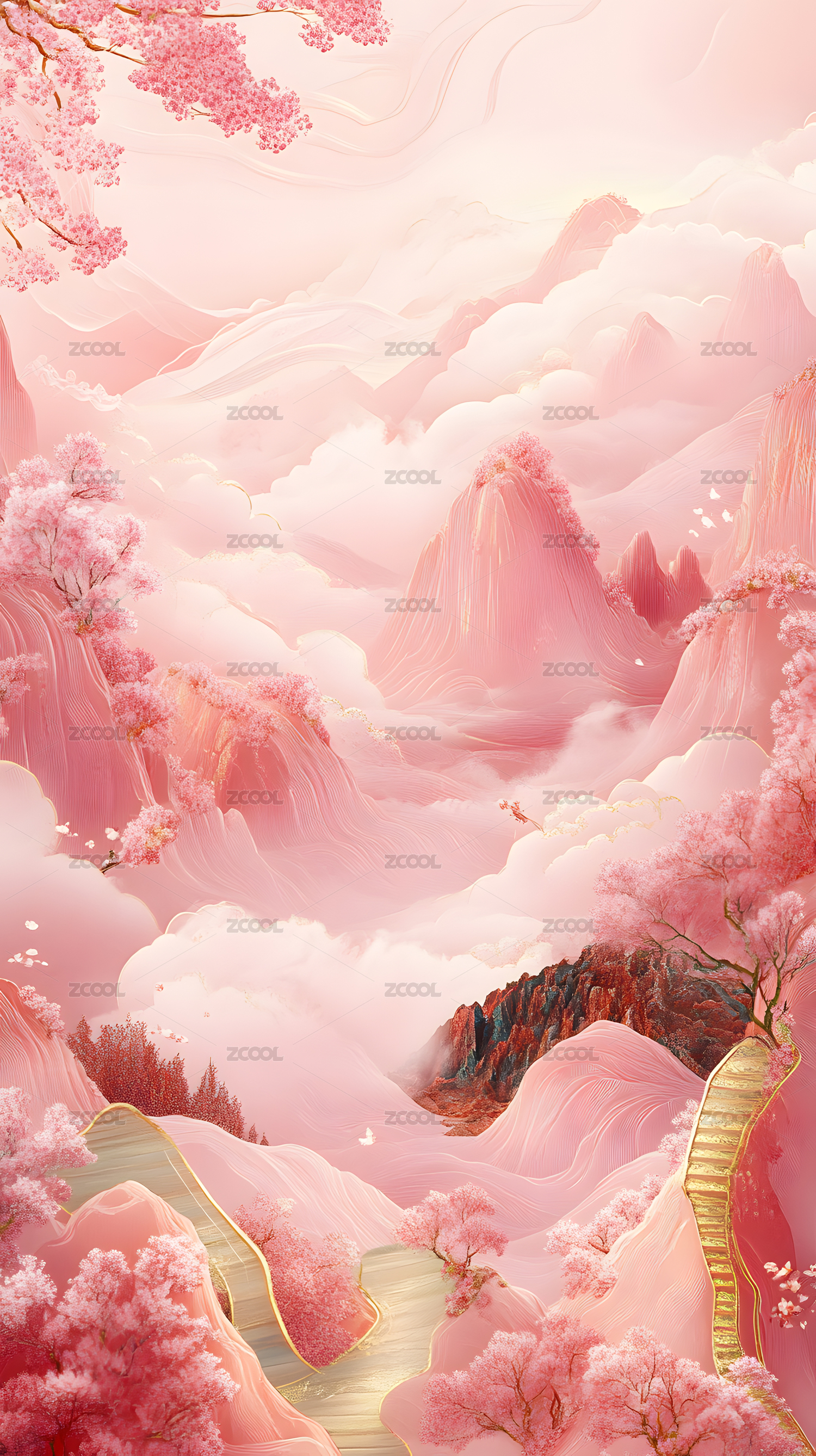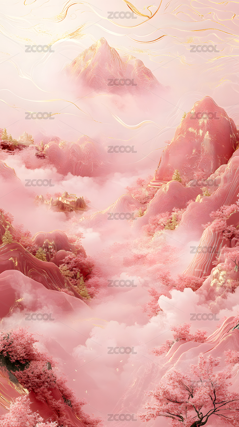 粉色,金色,中式,中国风,高山,山,风景,背景
