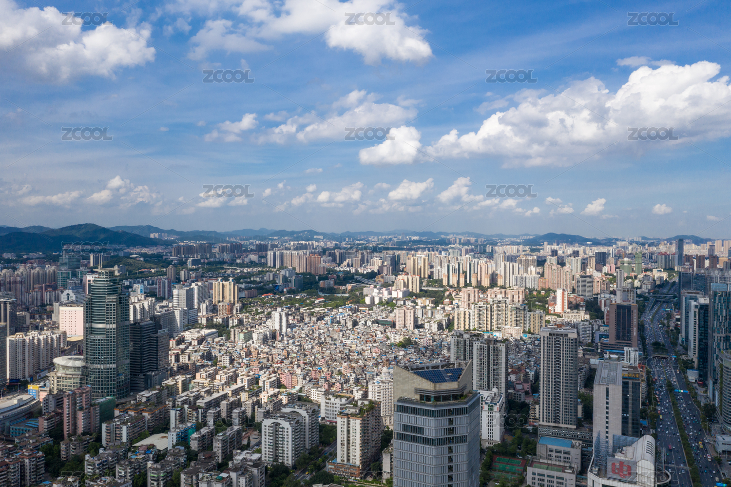 蓝天白云下的中国深圳城市郊区住宅建筑及高架桥