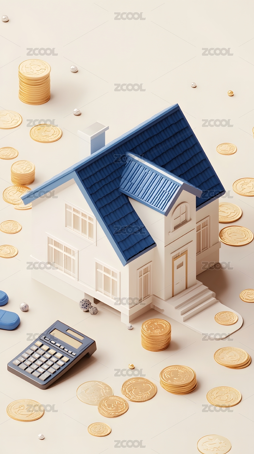 红色屋顶小屋与金币装饰