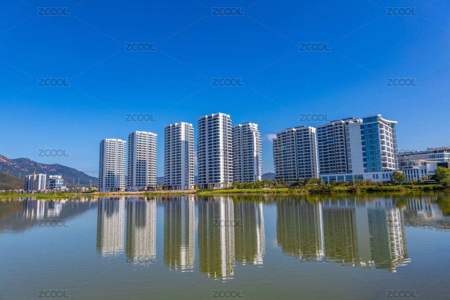 中国广州市南沙区凤凰湖公园环境优美的湖景楼盘住宅区