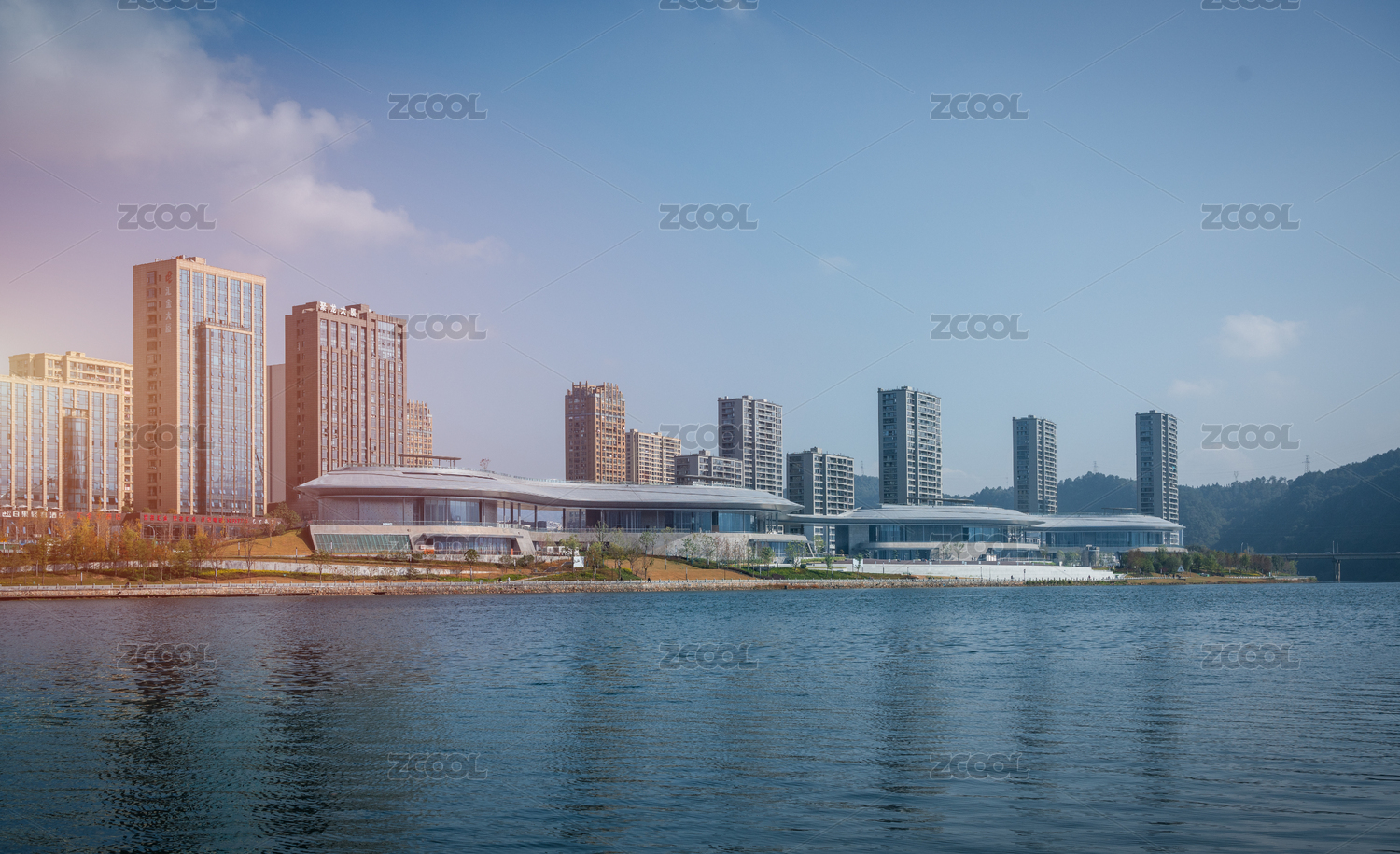 浙江,建德,建德博物馆,博物馆,全景,城市,风光,阳光,高楼大厦,河流
