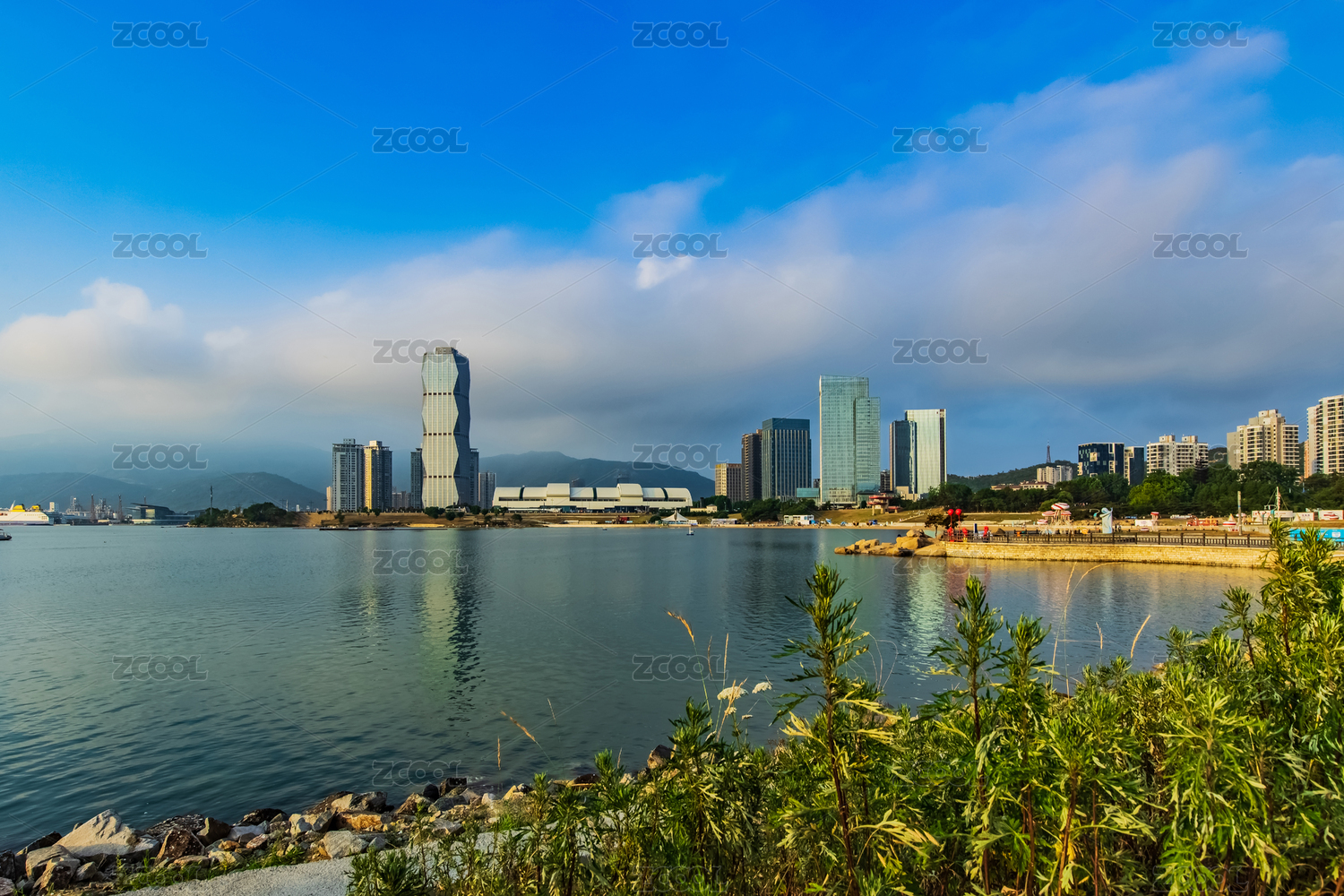 中国广东省珠海市沿海的现代城市建筑和美丽风光