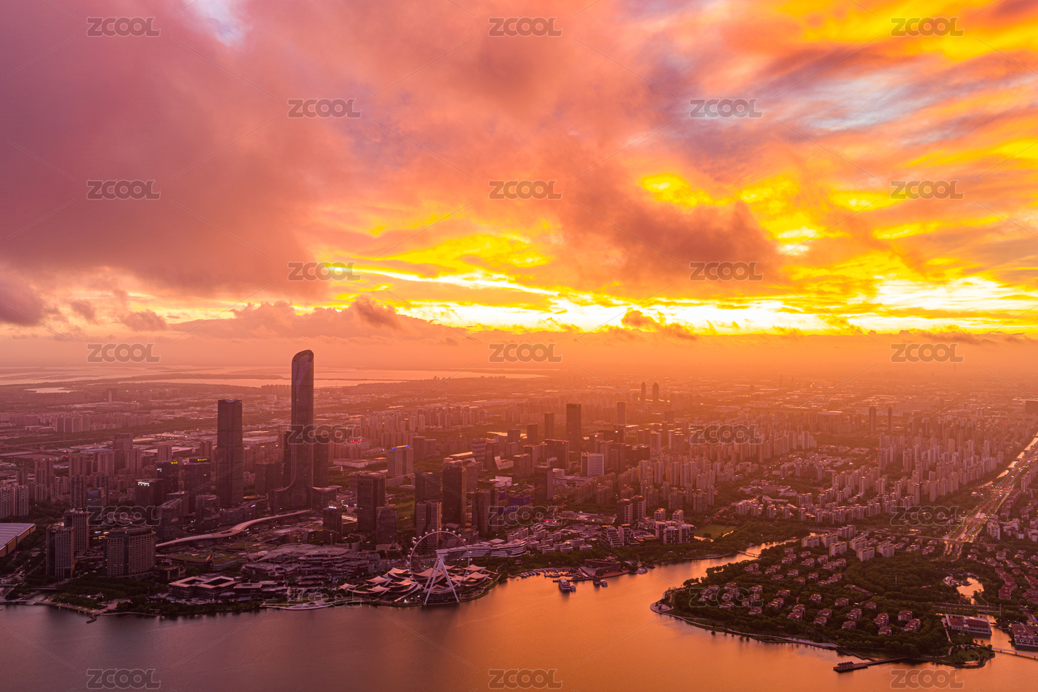 中国江苏苏州工业园区金鸡湖景区晚霞