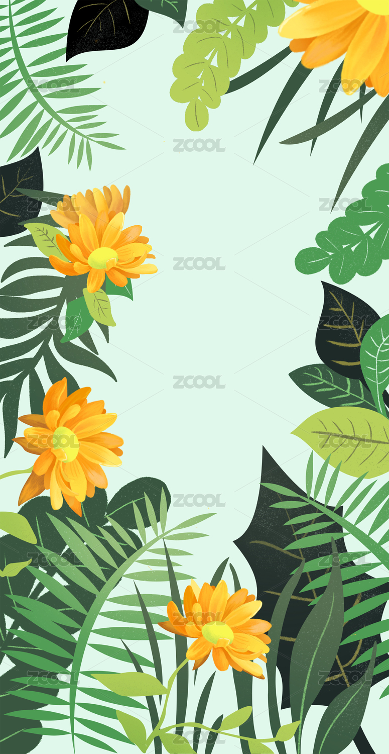 清新植物插画背景图