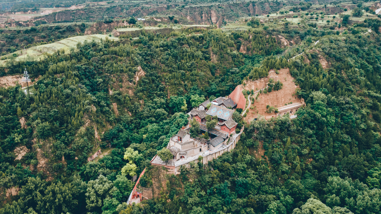山西,临汾,隰县,小西天,千佛寺,清晨,航拍,外景地,山西航拍,山西风光