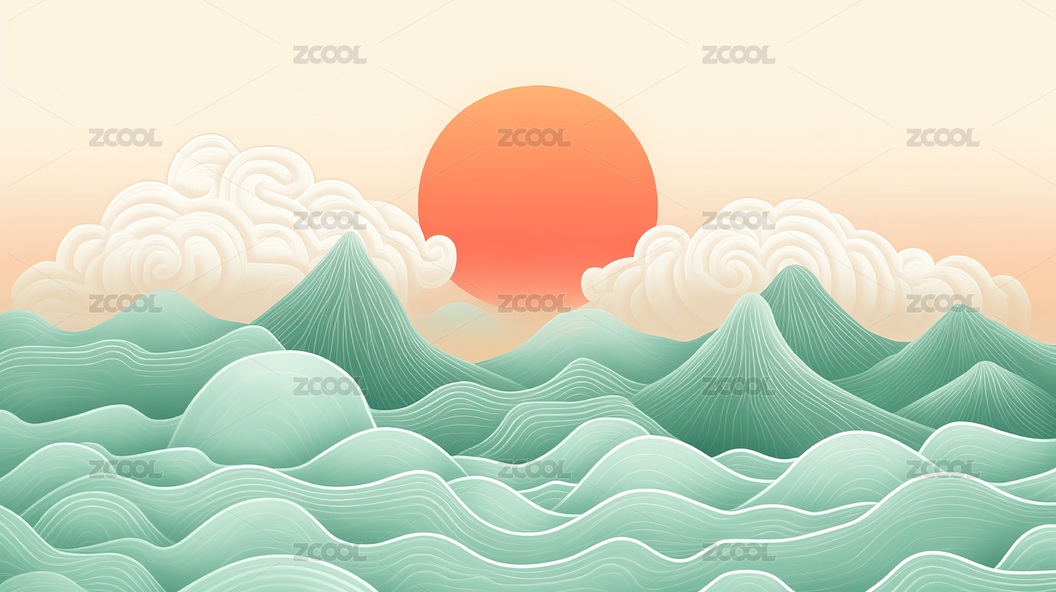 中国风古楼建筑传统国风古建筑国潮插画背景