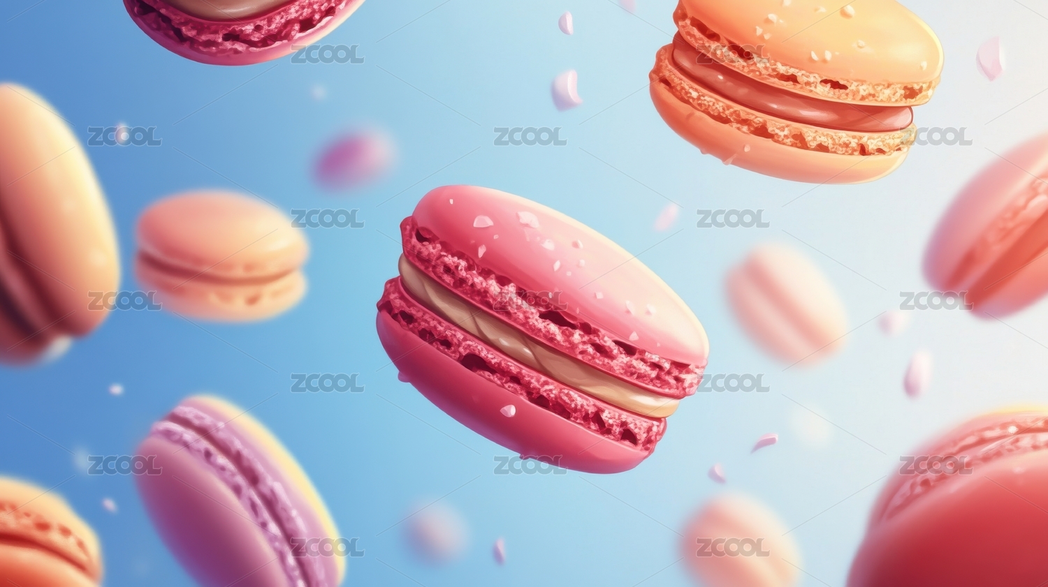 马卡龙渐变色阵列美食摄影风格纯色背景