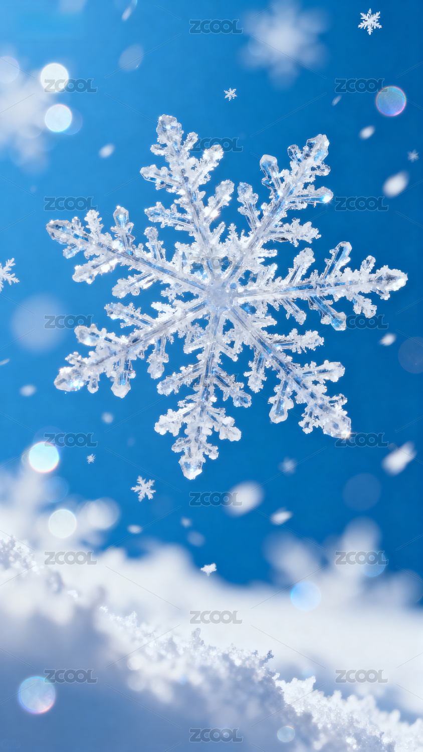 蓝色闪耀冰晶雪花冬日梦幻背景
