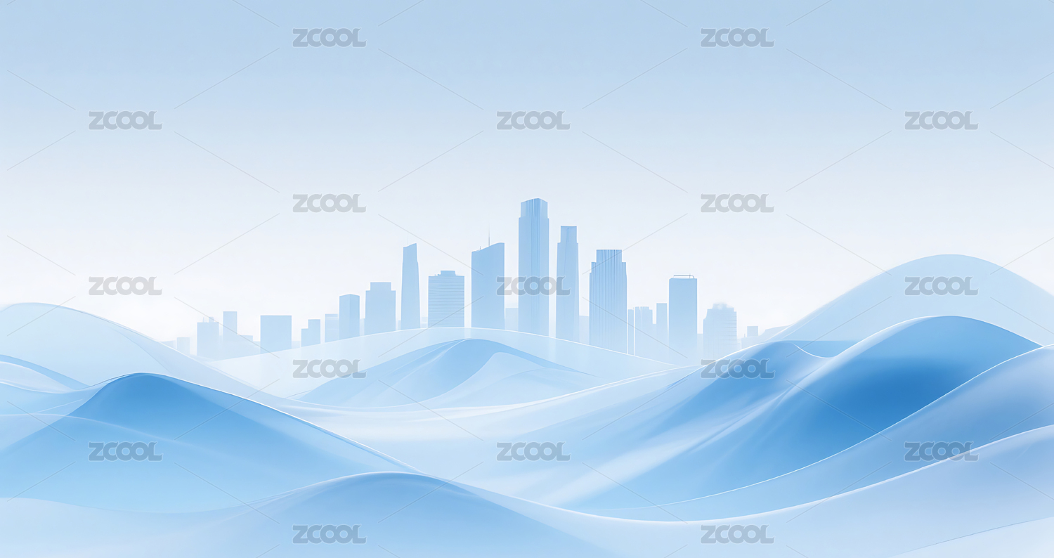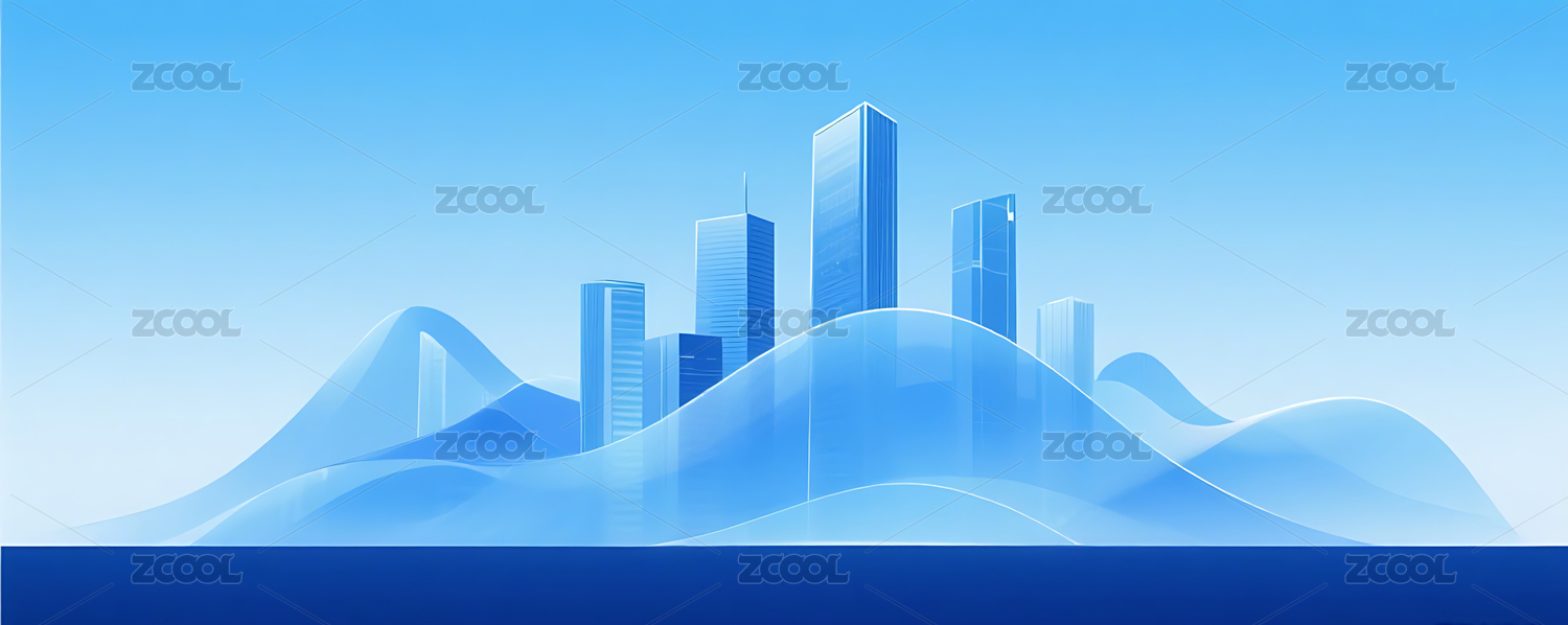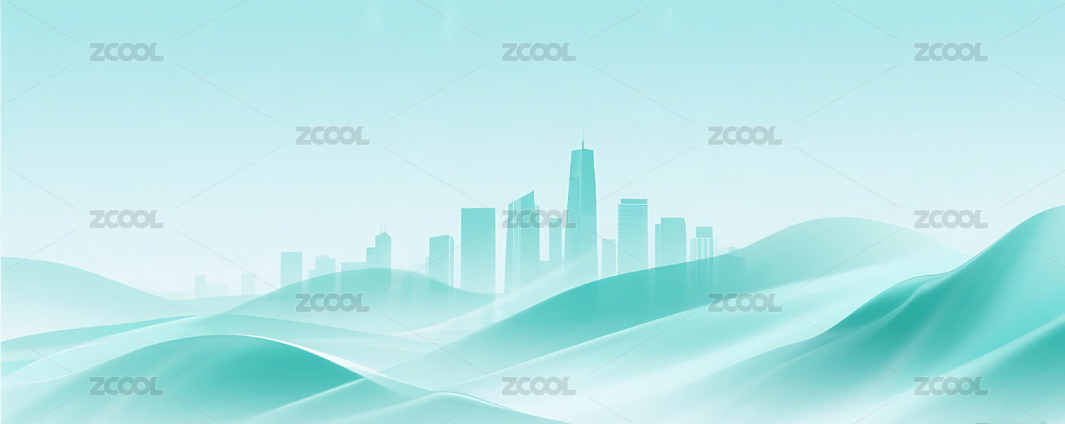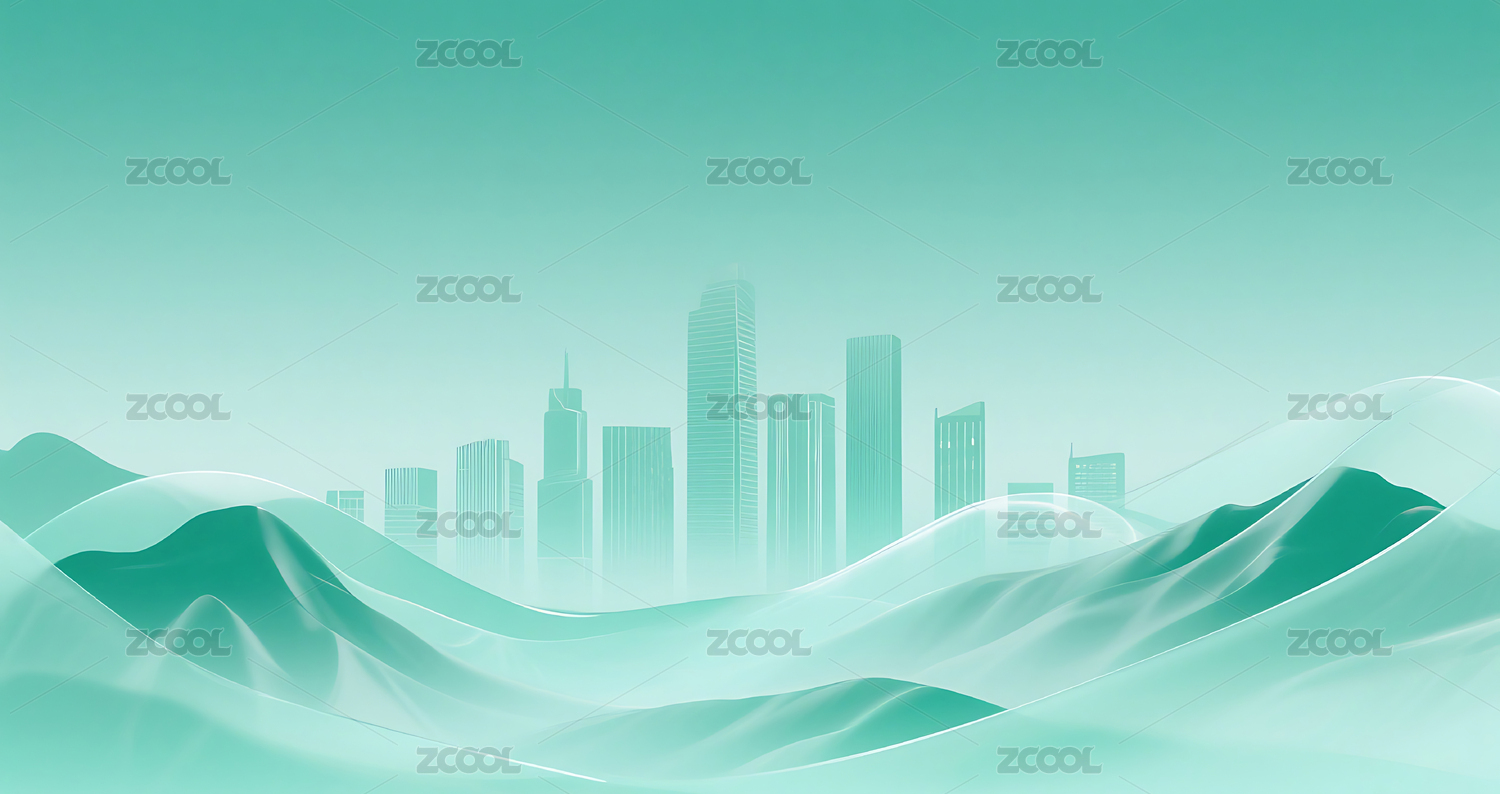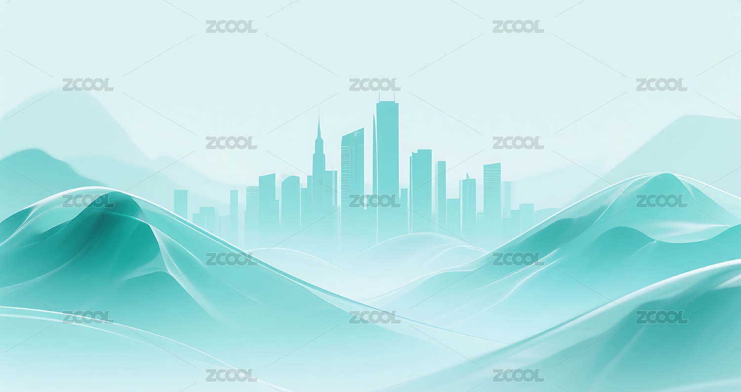 流畅的蓝绿色渐变波浪线条玻璃城市建筑