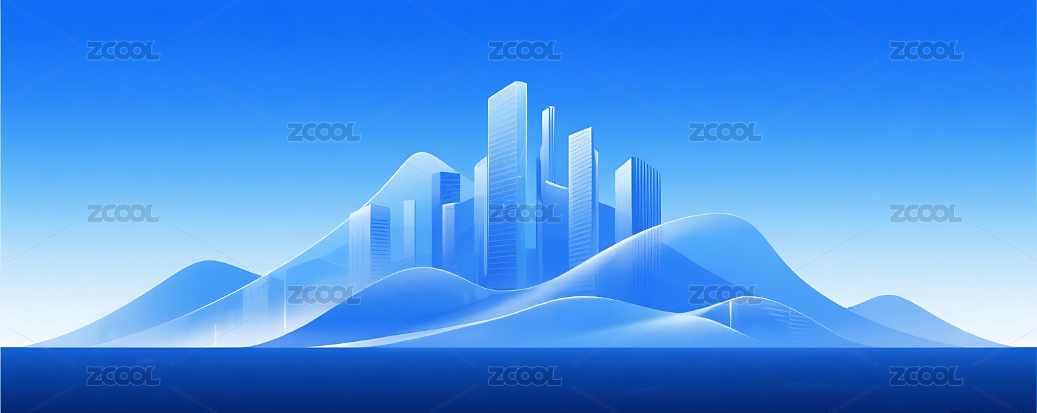 蓝色3D商务科技几何抽象城市漂浮物背景