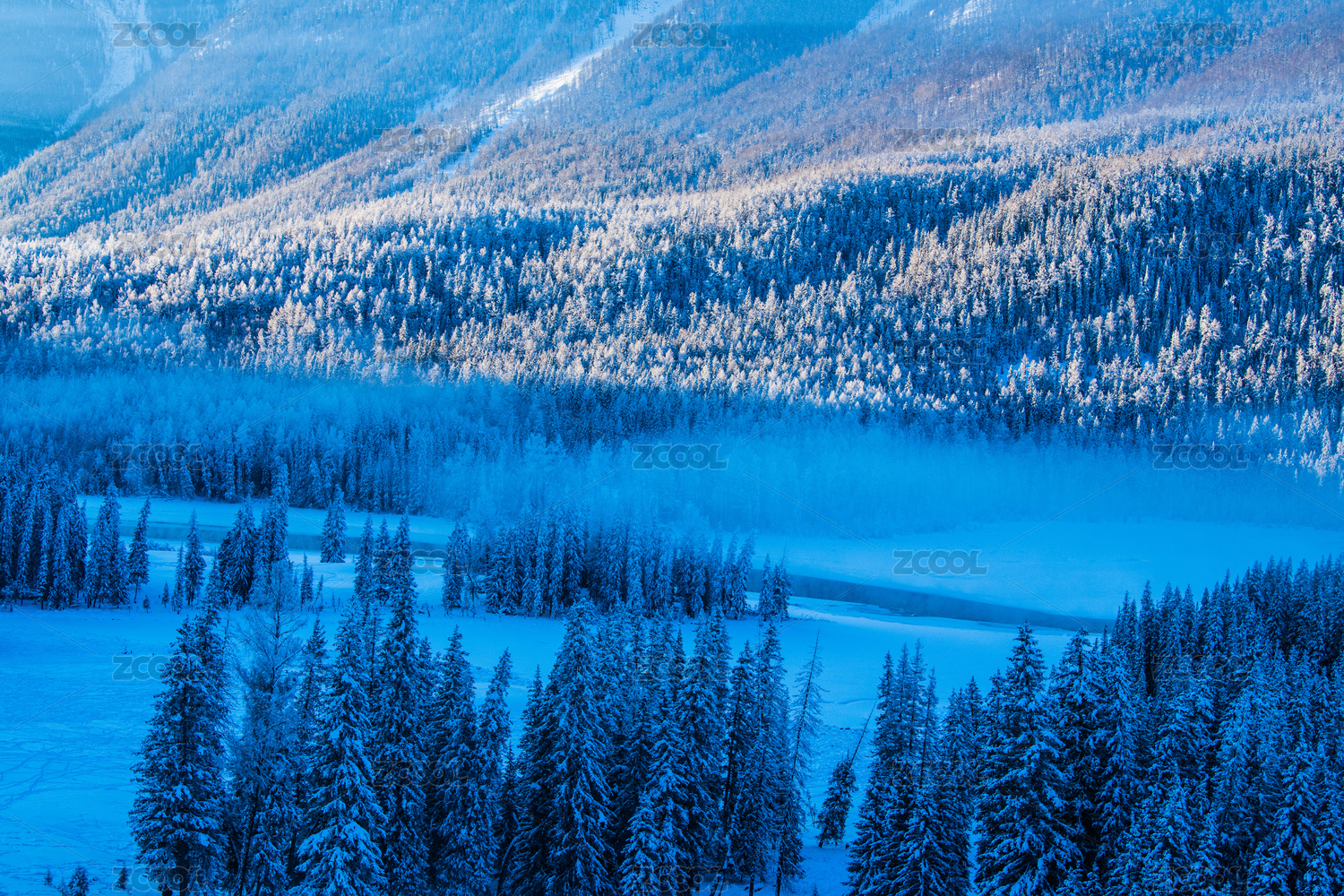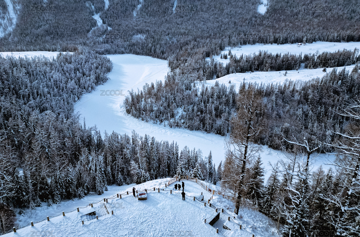 中国新疆阿勒泰地区喀纳斯雪景航拍
