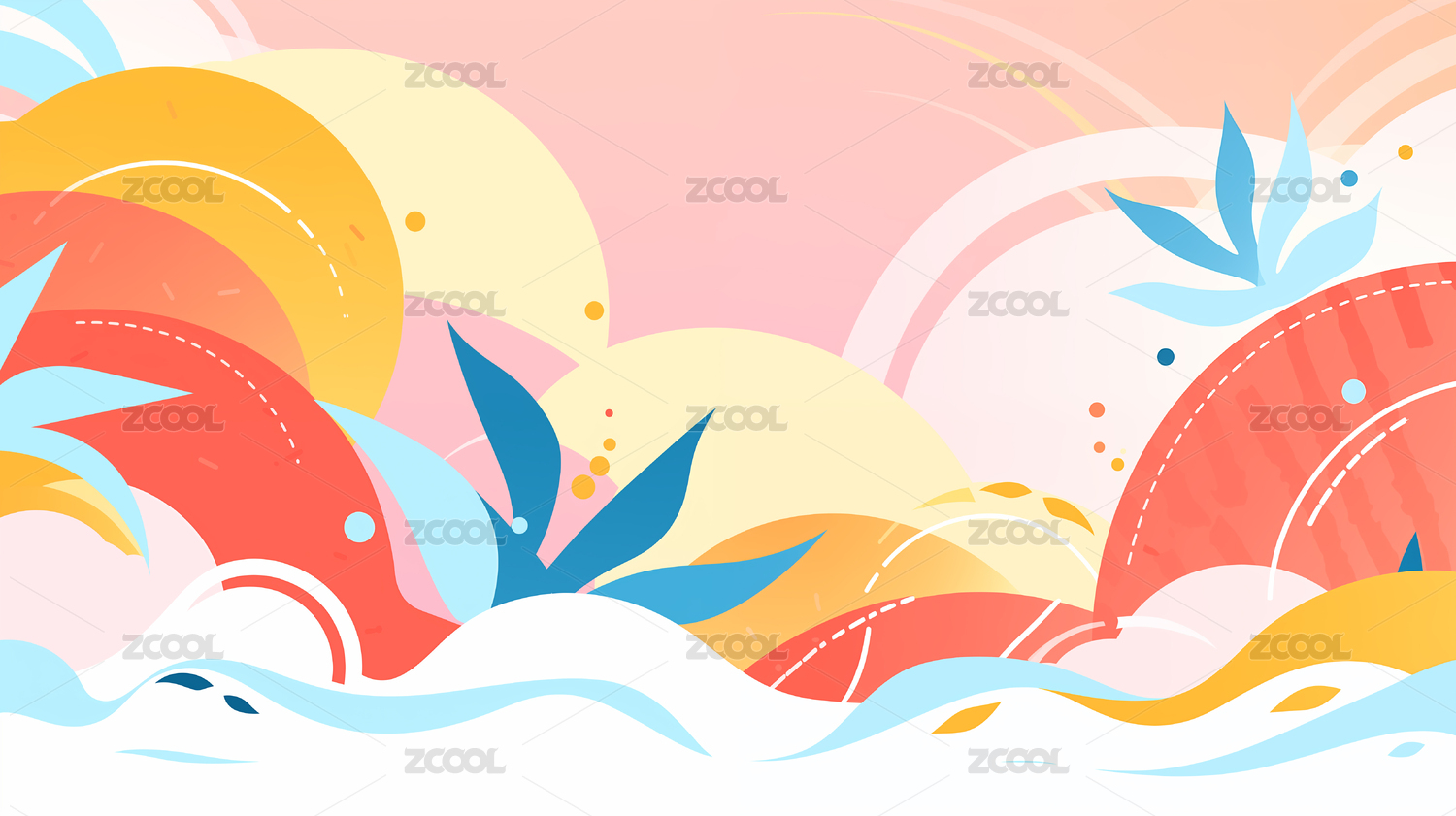 手绘卡通五彩缤纷的夏天抽象艺术感插画背景