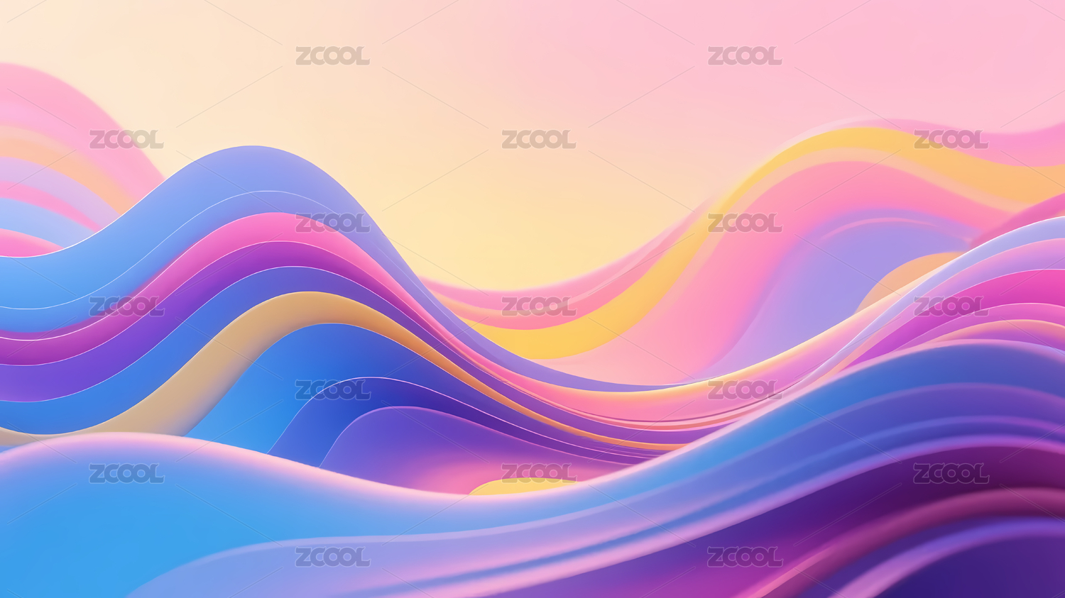 粉蓝黄紫渐变波浪线条的梦幻效果