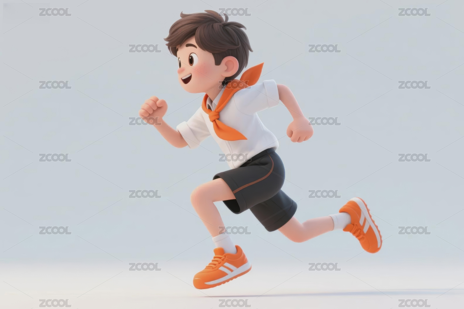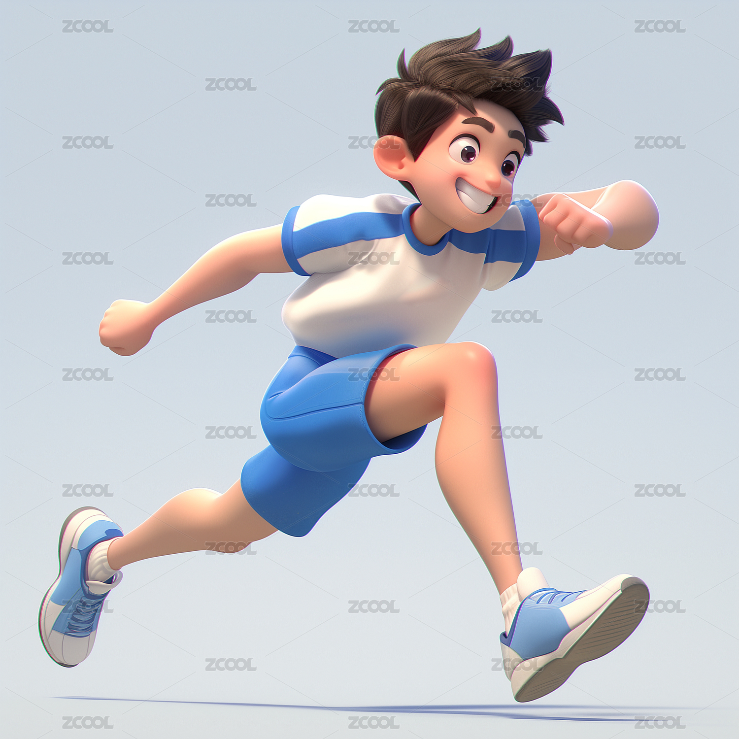 3D,卡通,人物,健康,男,教育,全身,进步,坚持,学生