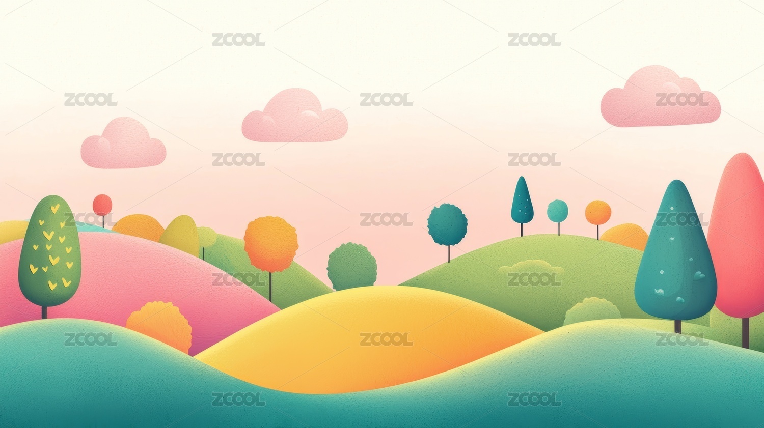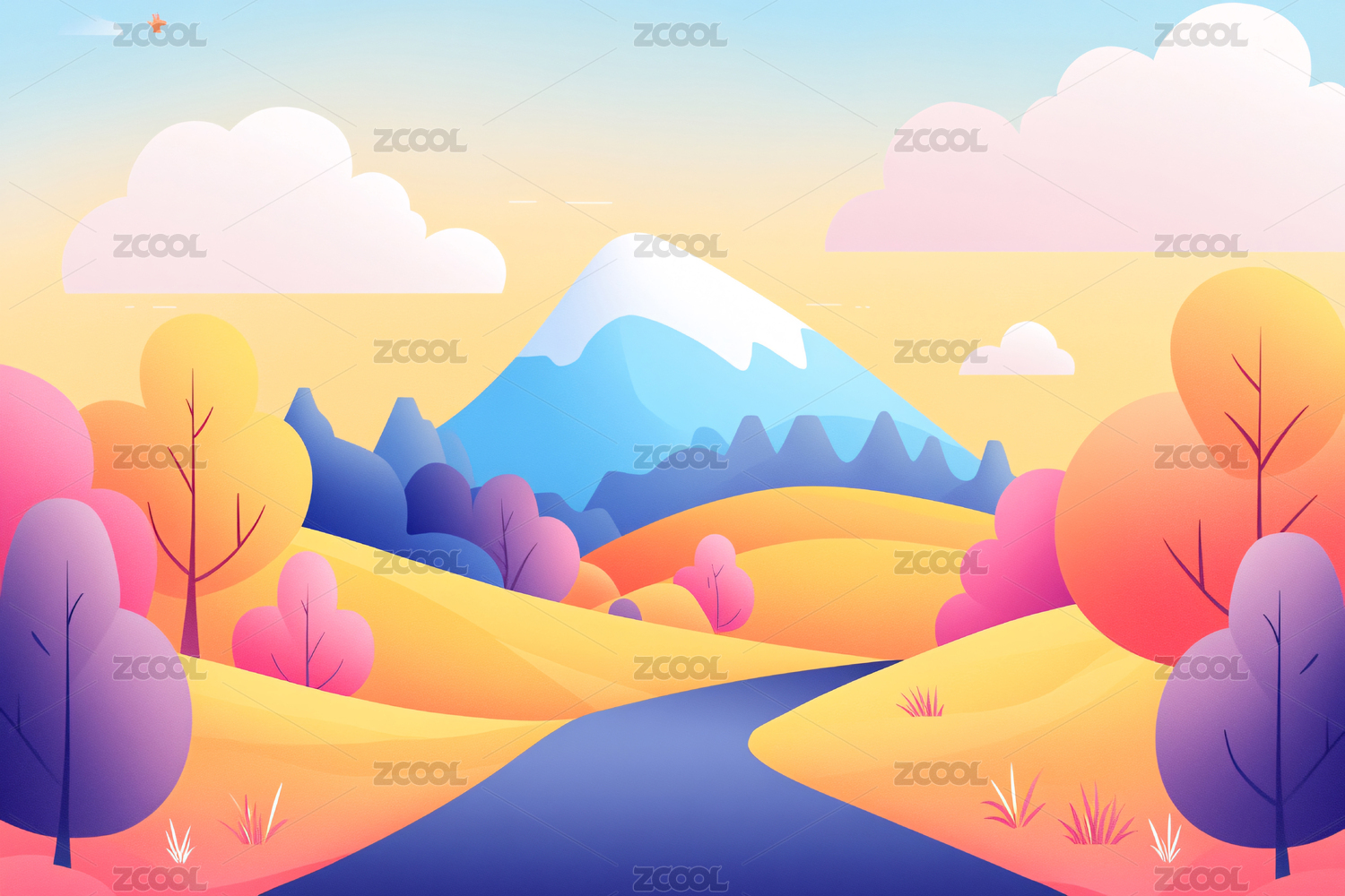 立秋节气户外旅行自然风景处暑卡通唯美插画