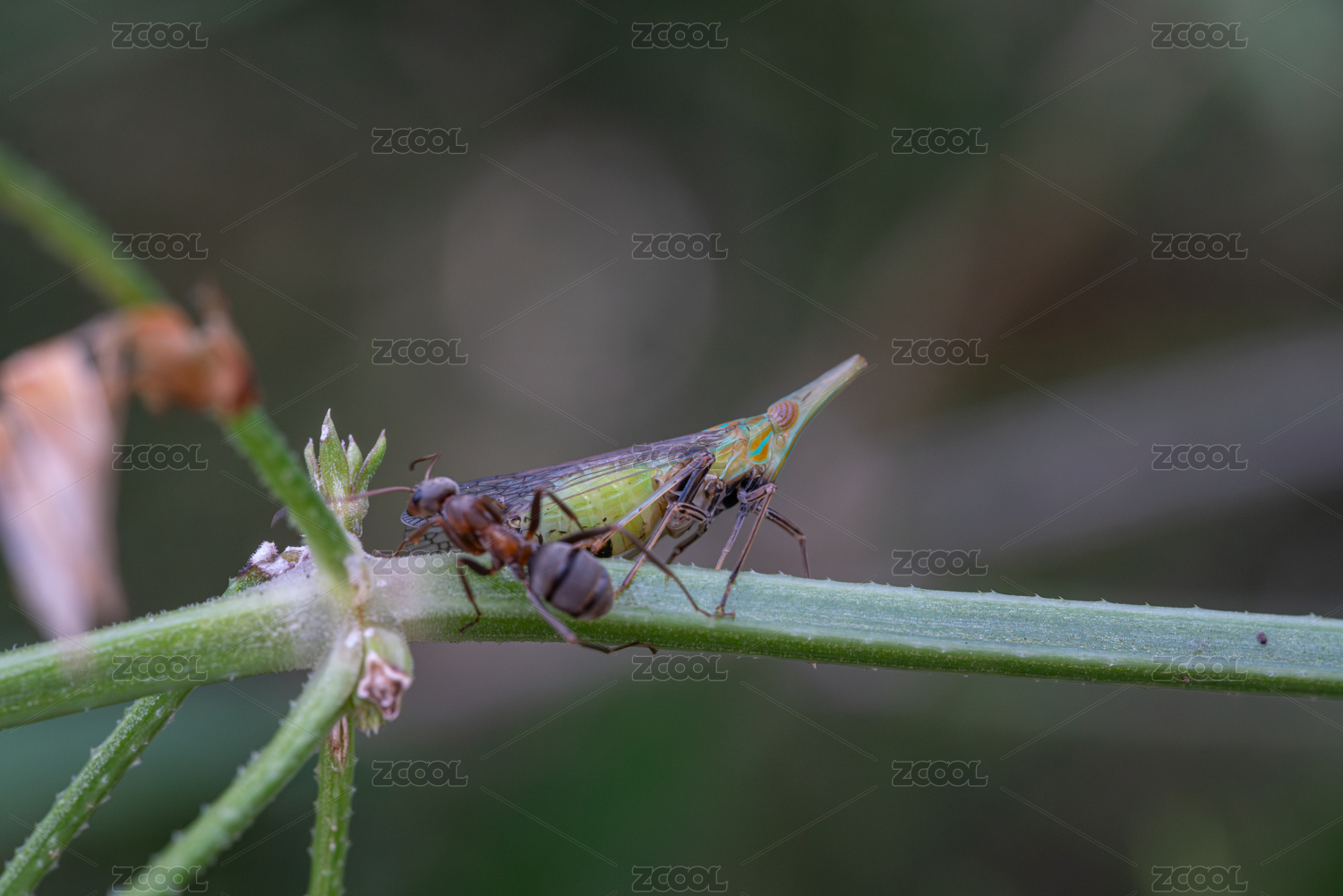 正在植物茎秆上觅食的蚂蚁