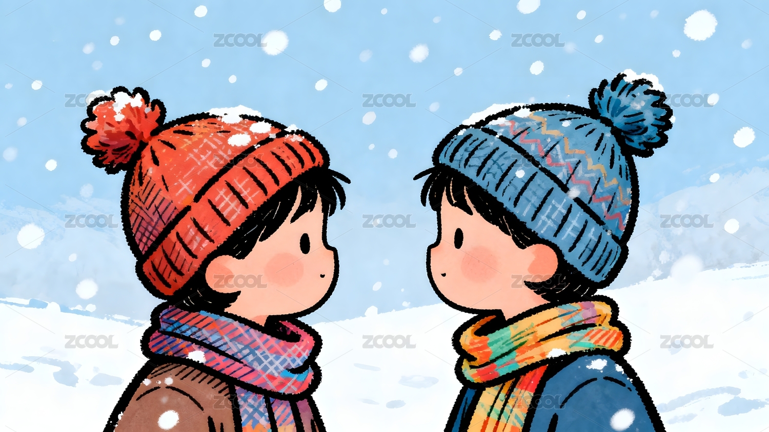 冬日雪景中相视的少女