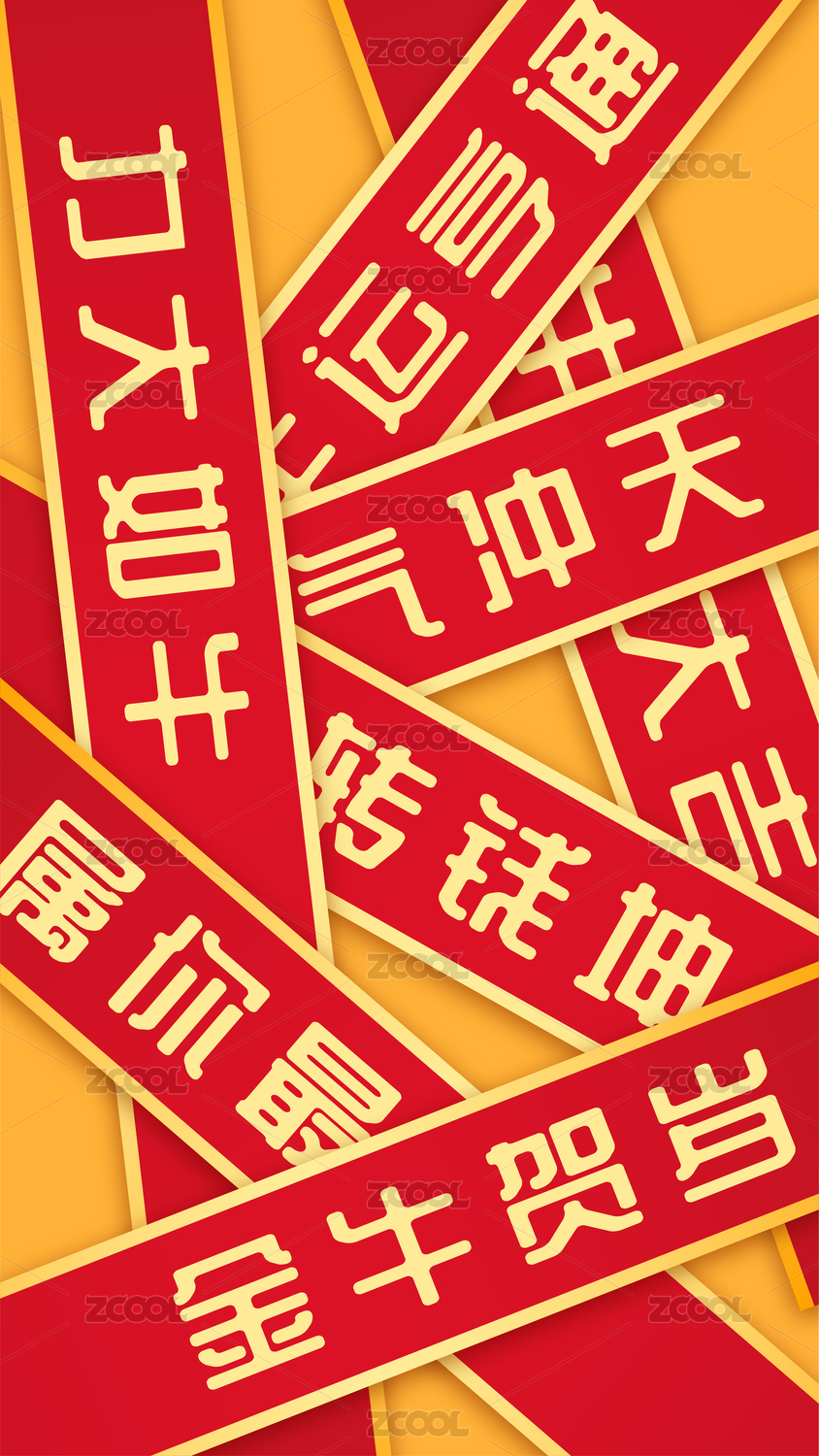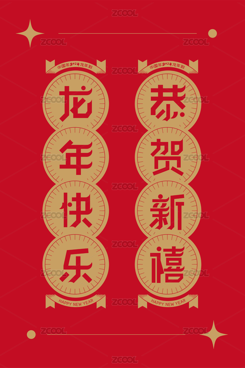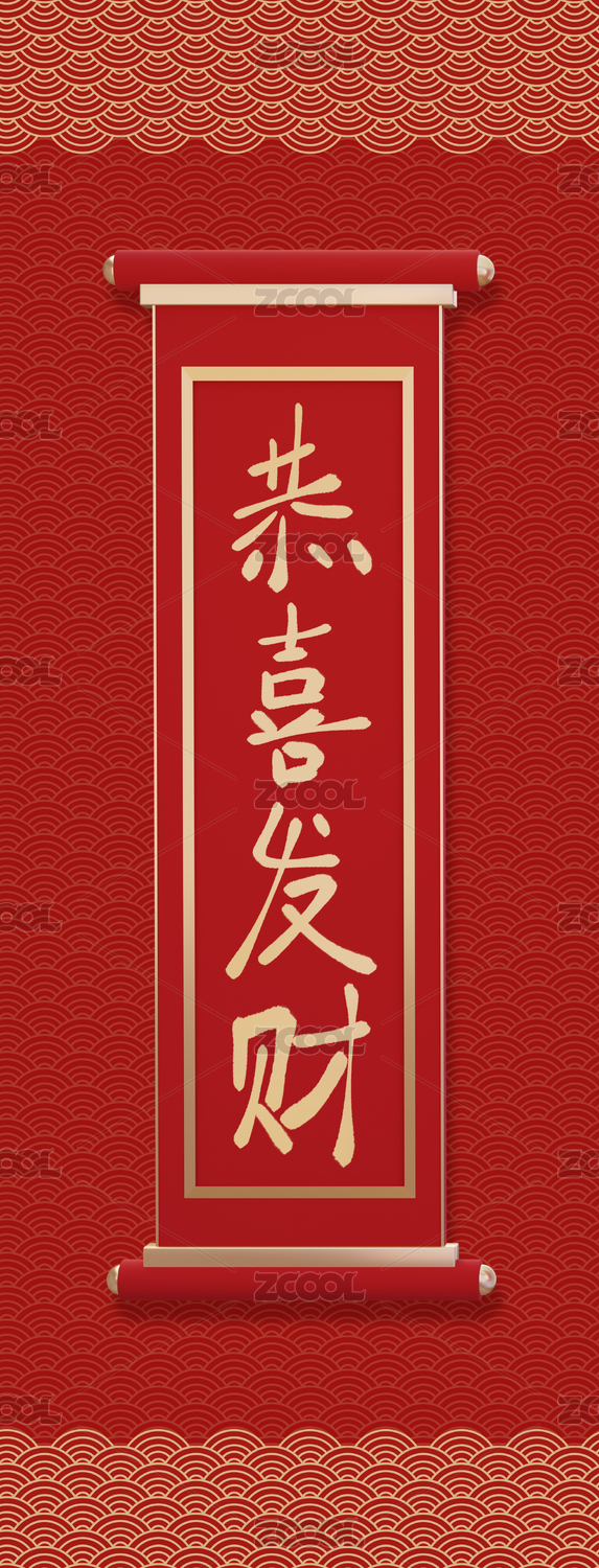竖版红金色新年国风拜年手写书法祝福卷轴