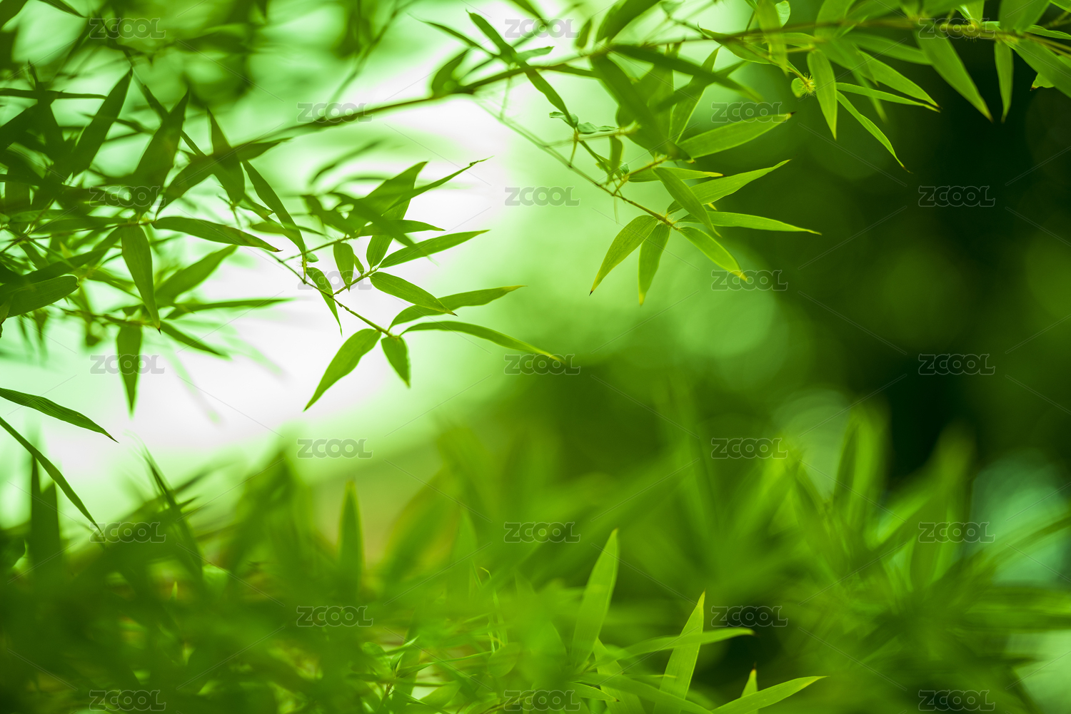 绿色的竹叶虚化的微距摄影