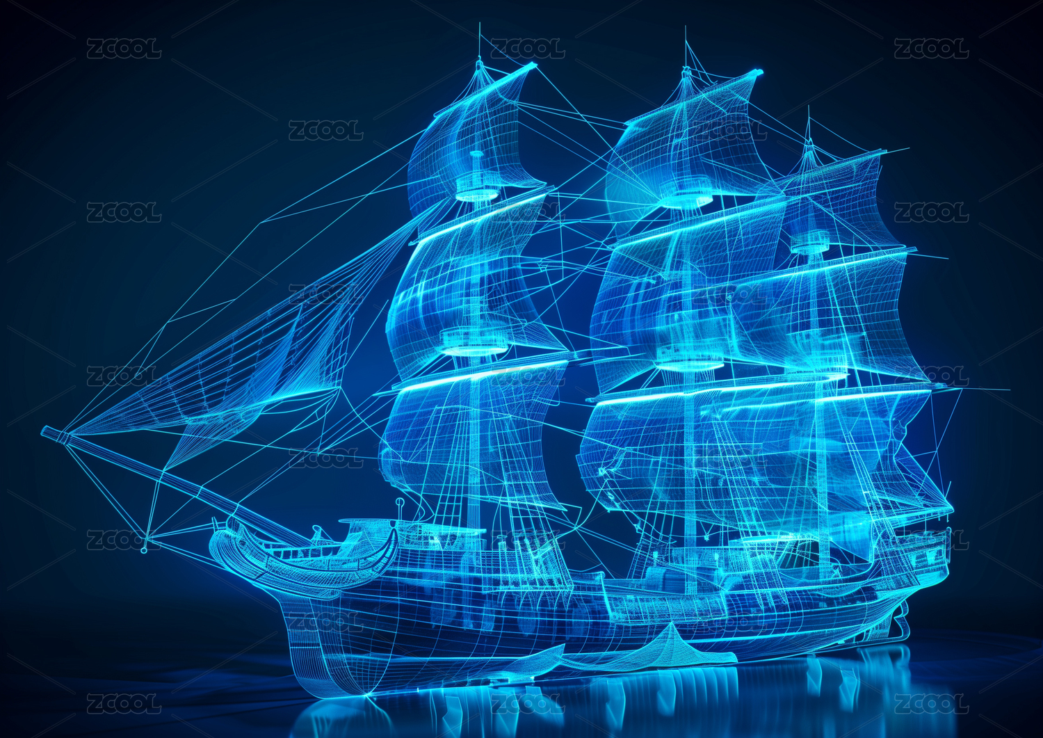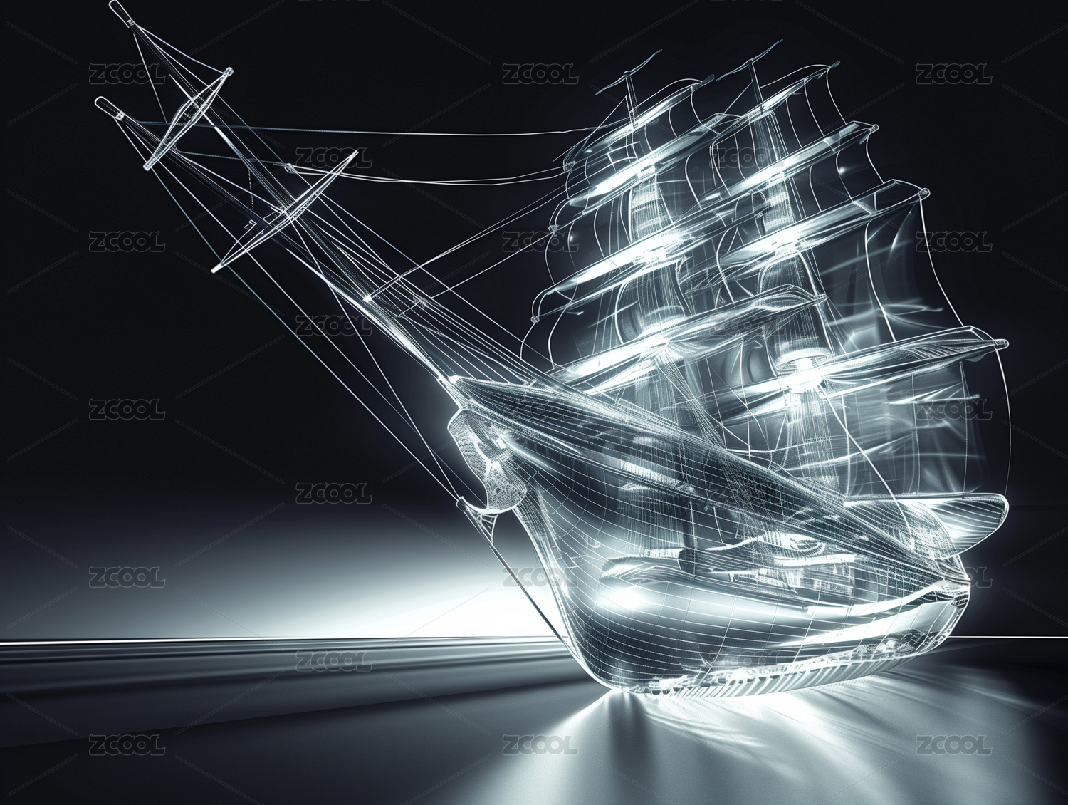 三维,帆船,大帆船,游轮,光线,科技,抽象插画