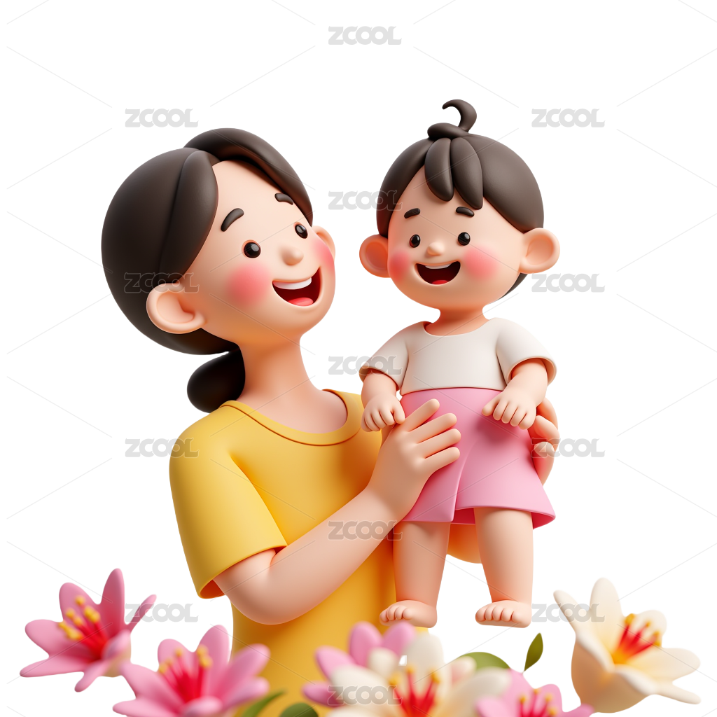 2款母亲节慈爱的妈妈拥抱女儿Png免抠素材3D风格