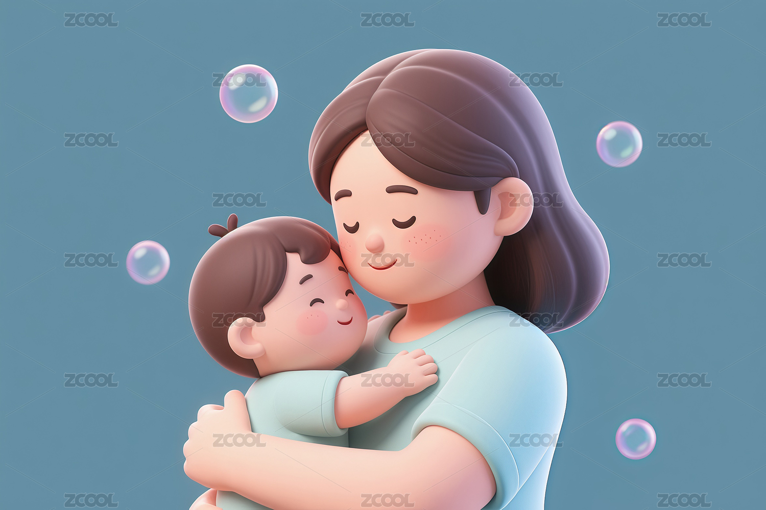 母亲节,插画,3D,母亲,孩子,儿童,温馨,拥抱,母女,女儿