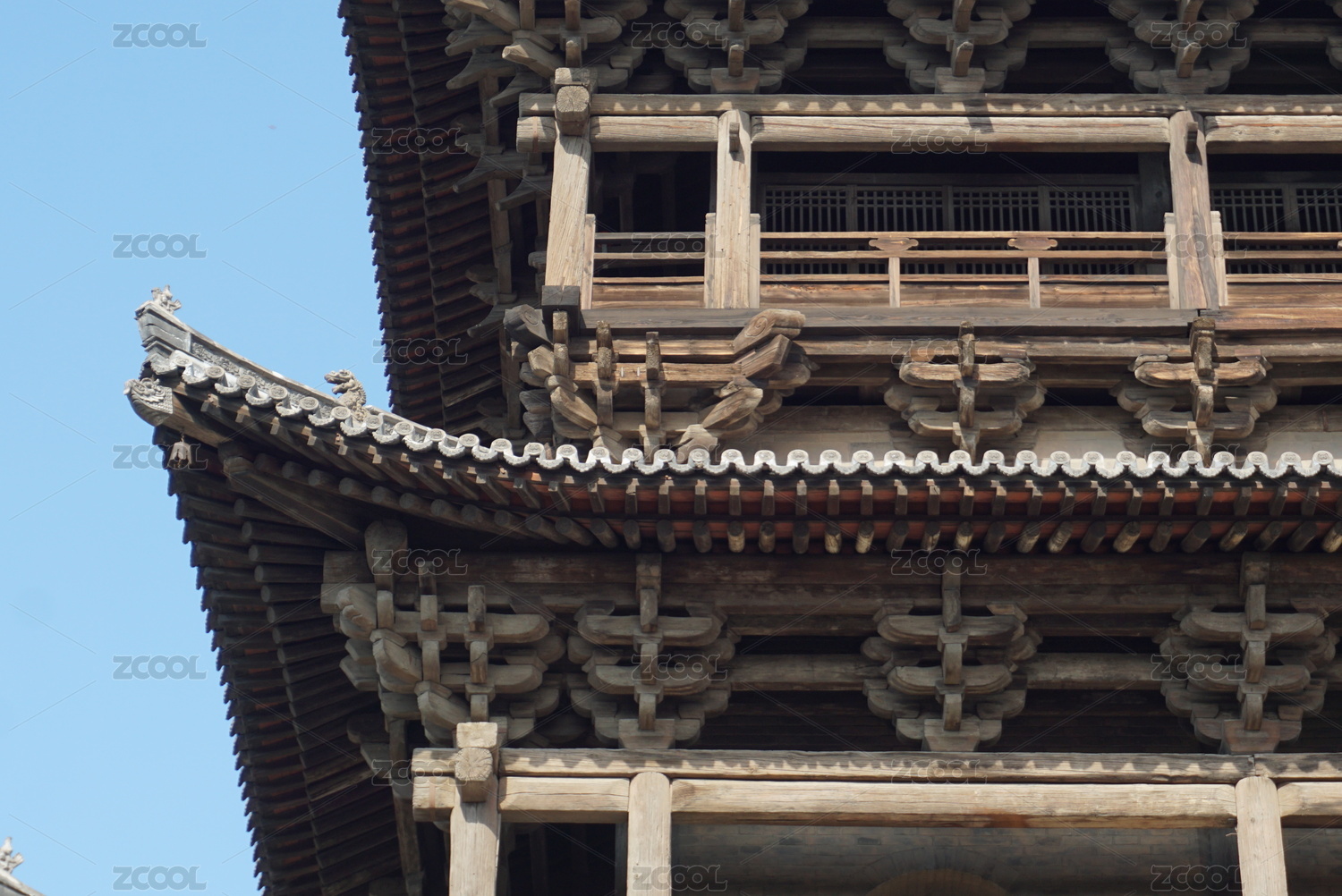 中国山西省代县明代边靖楼屋檐斗拱装饰建筑