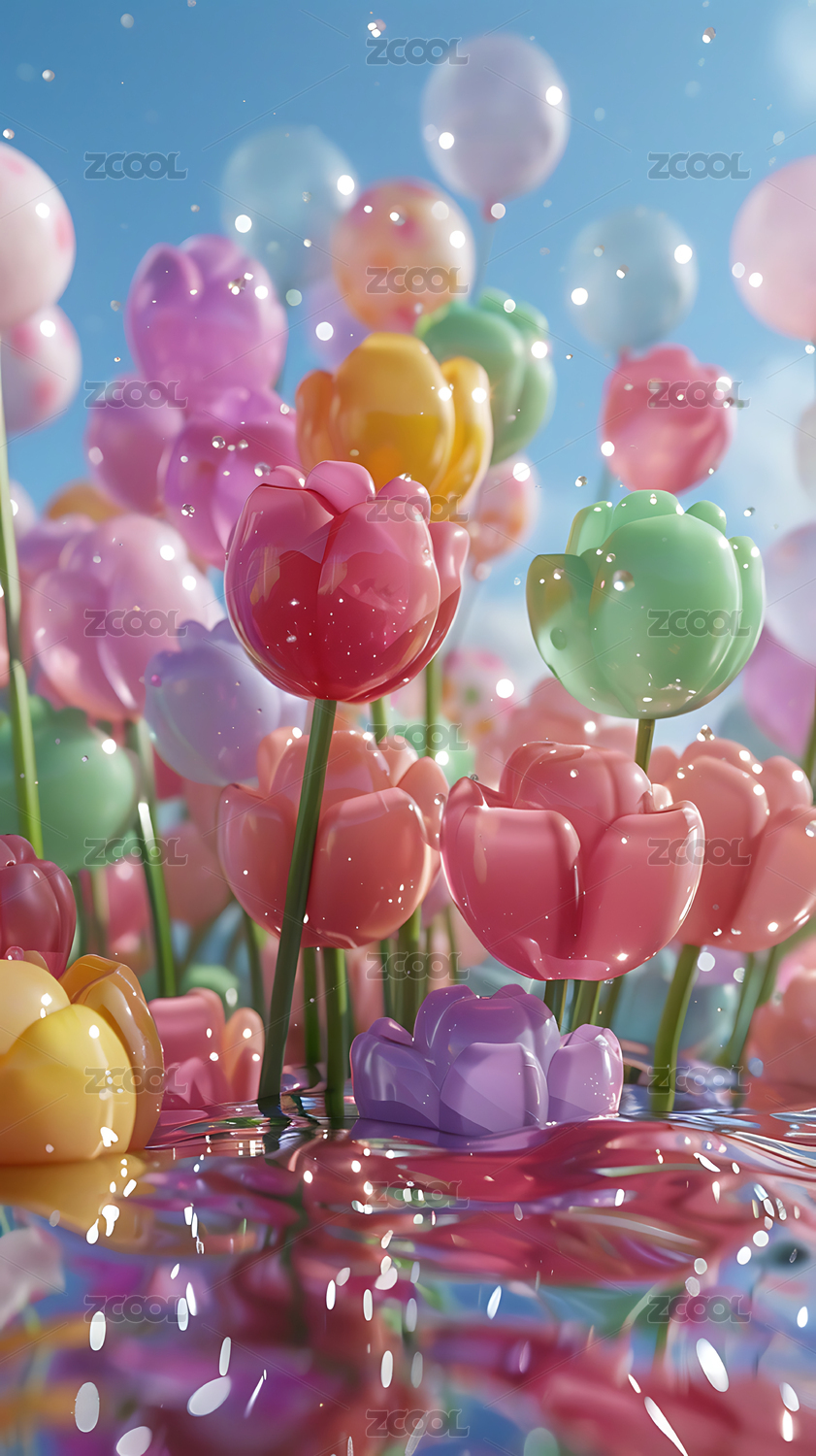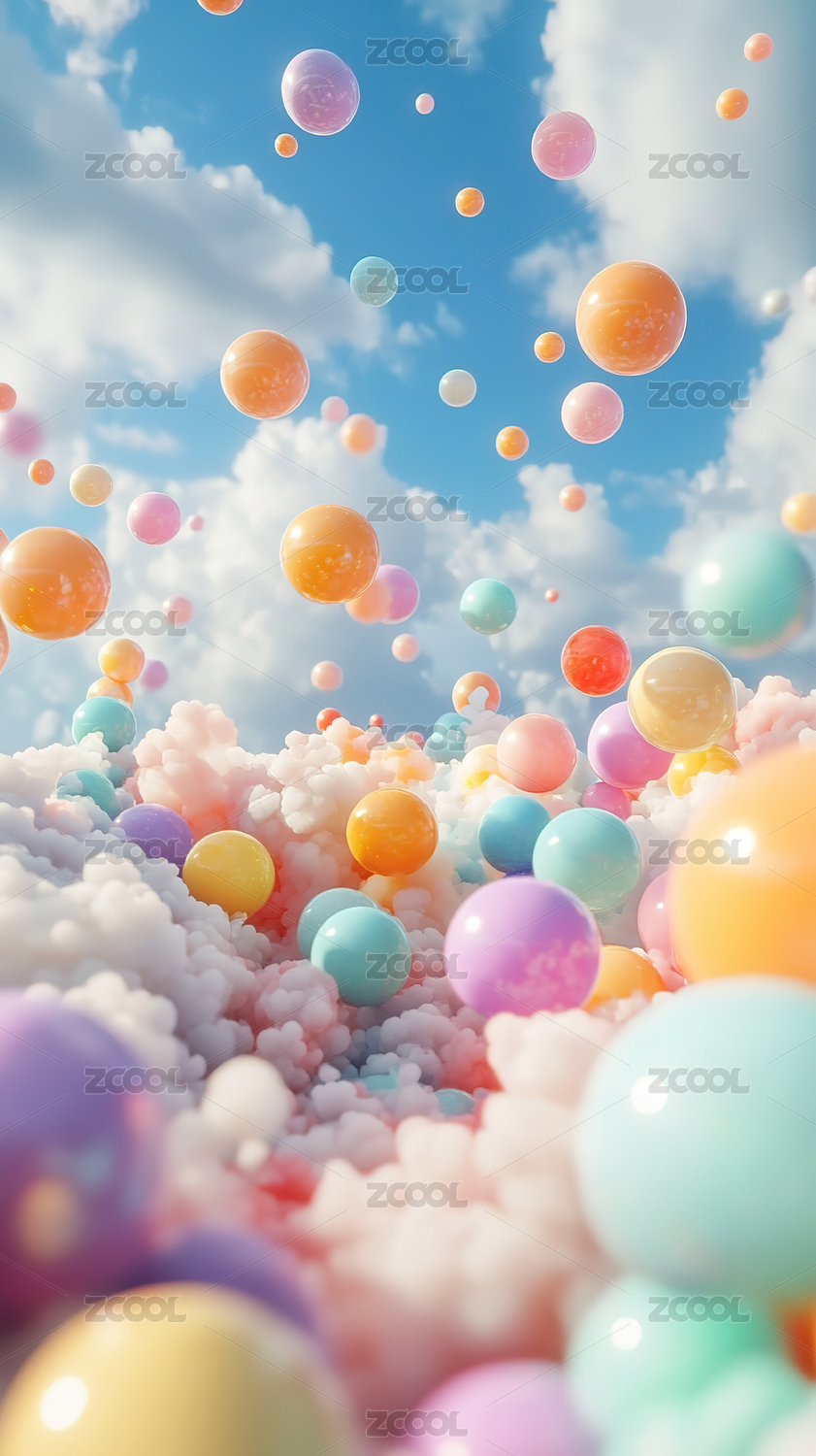蓝天白云充气花朵和气球的拱门3D卡通背景