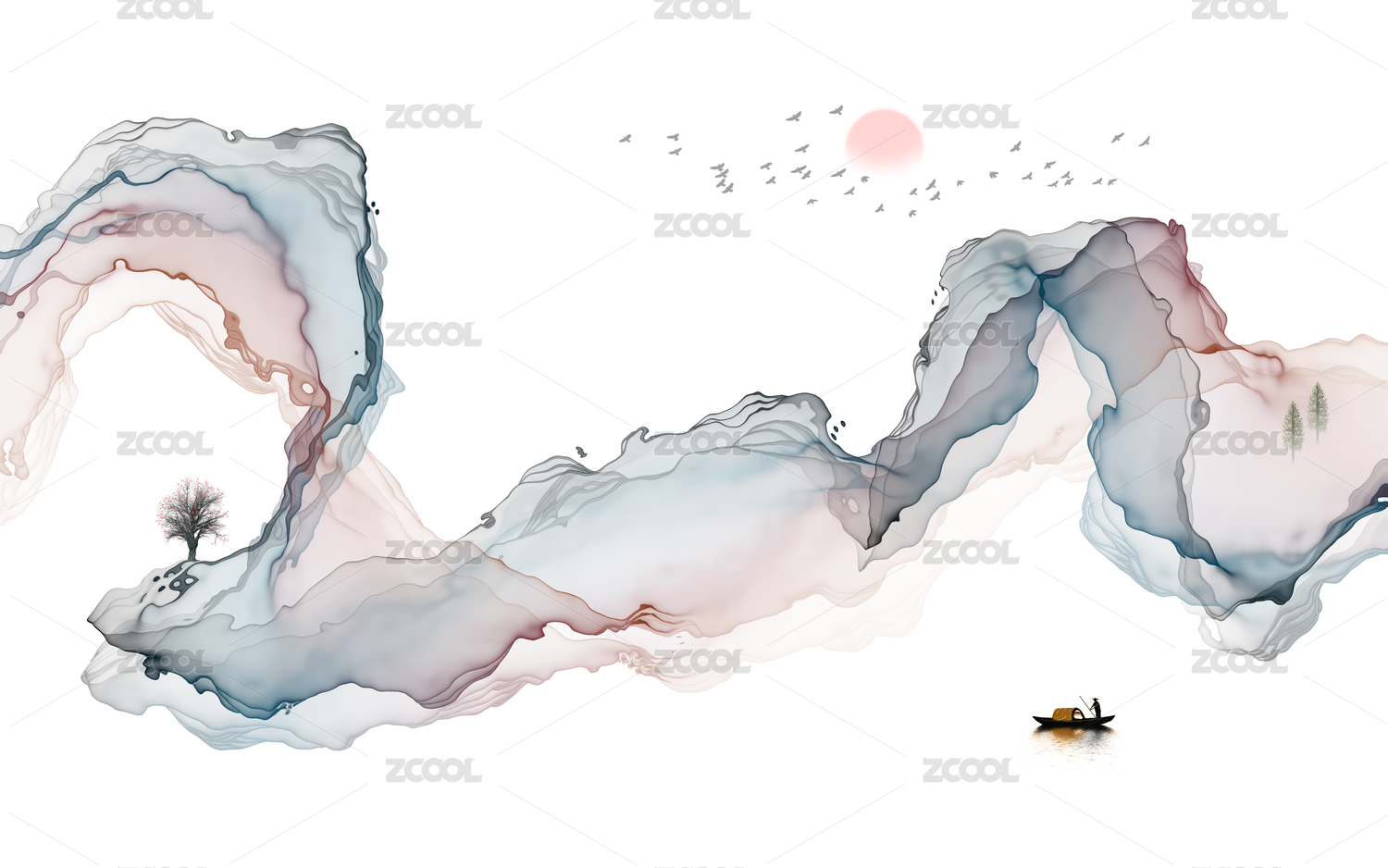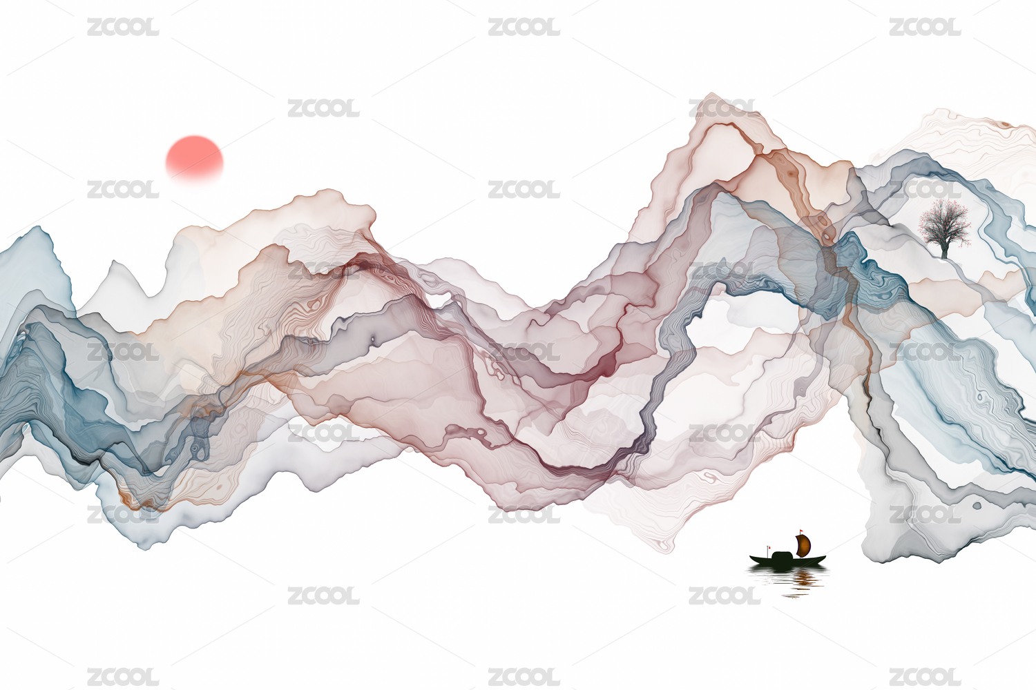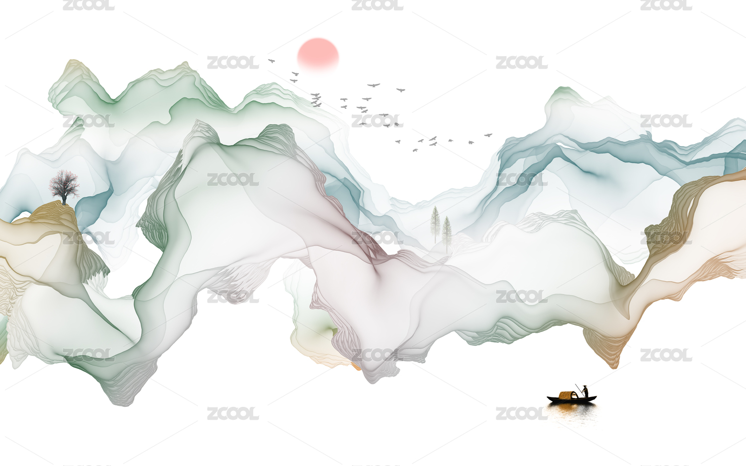 抽象艺术水墨线条新中式山水装饰画海报背景