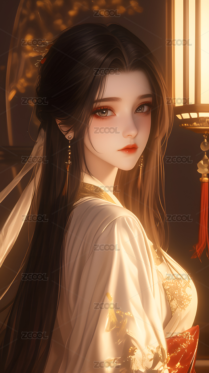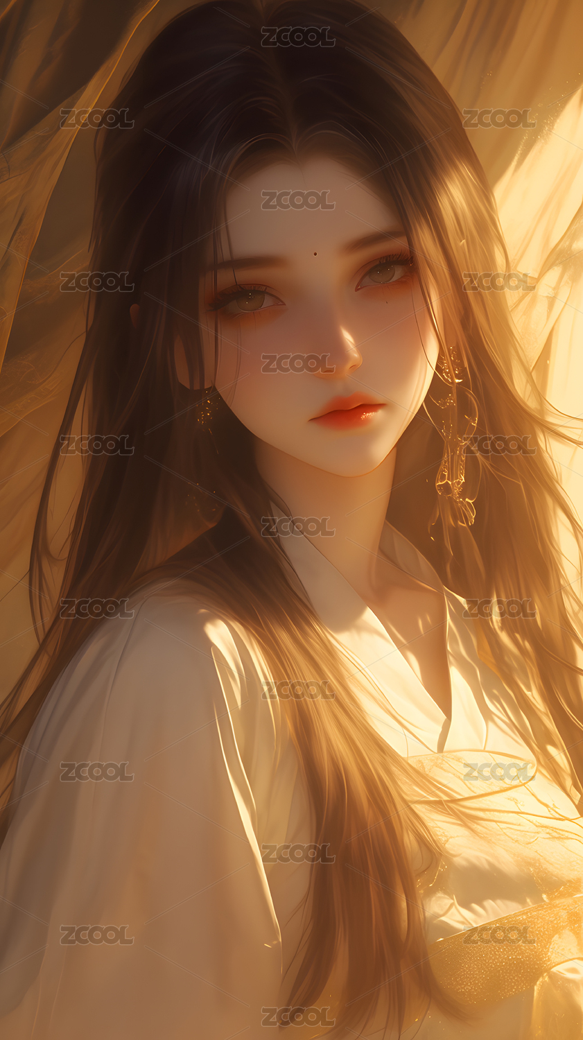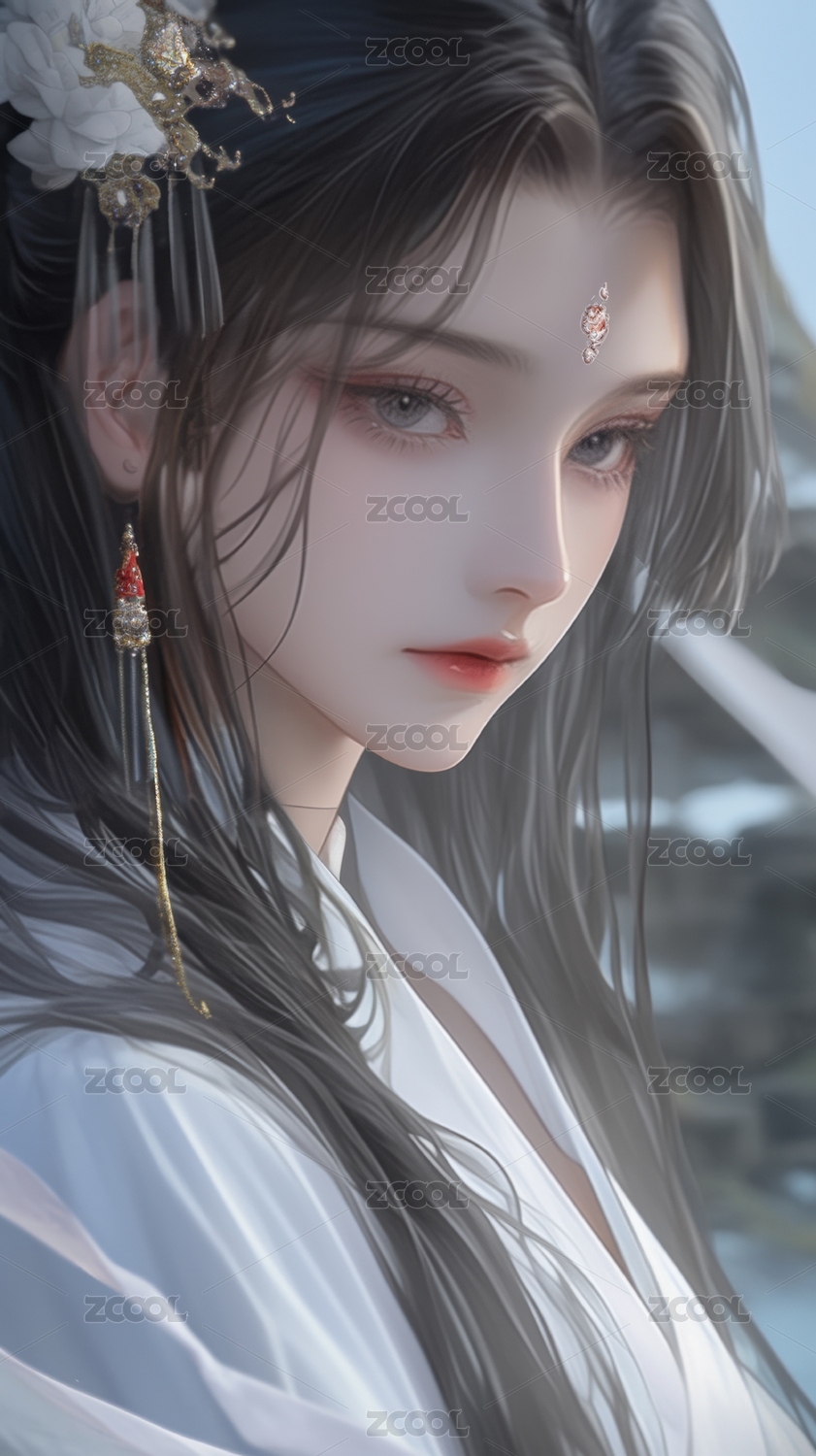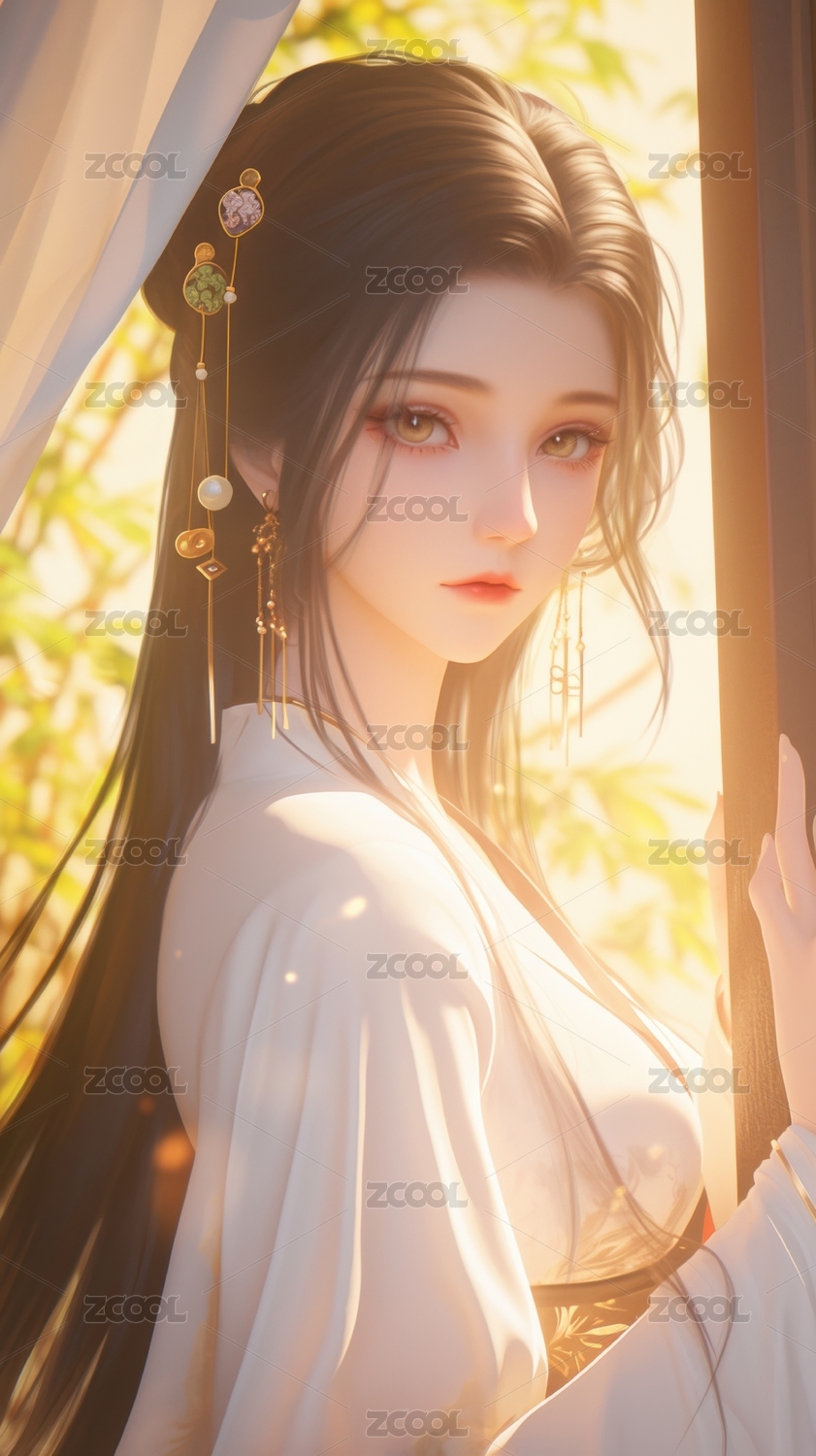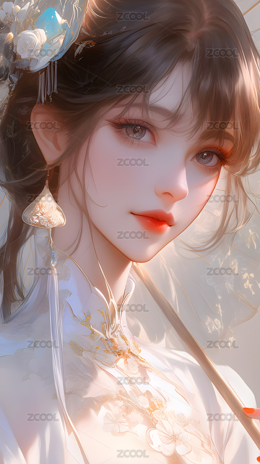 唯美,飘逸,光,女子,柔和,耳环,白衣,侧颜,长发,蝴蝶