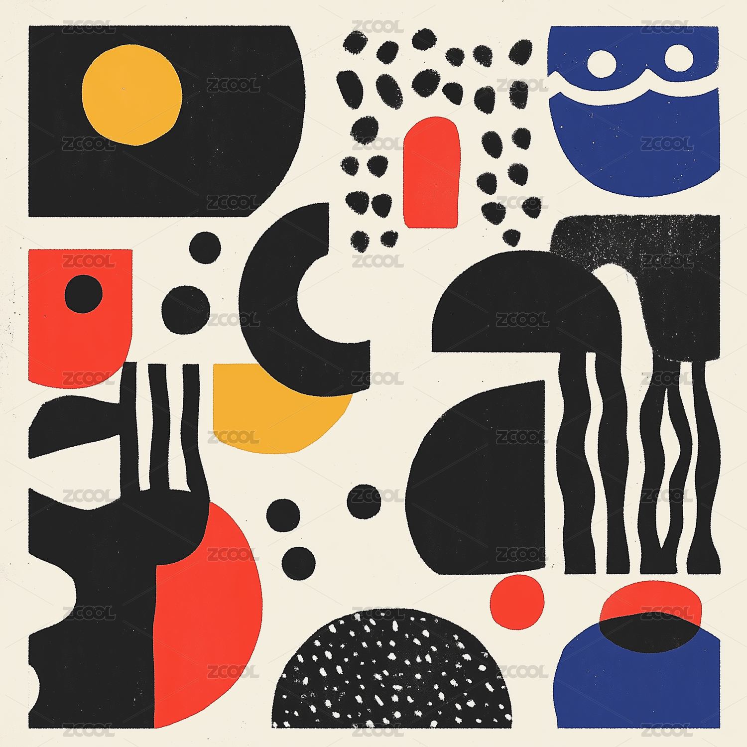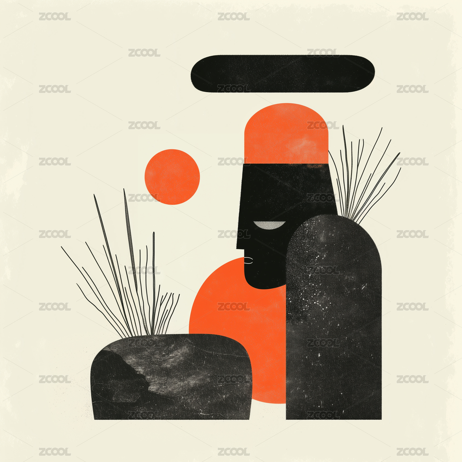 复古装饰画,树叶,构成,平面,平面设计,装饰设计,高级感,设计感,抽象,复古