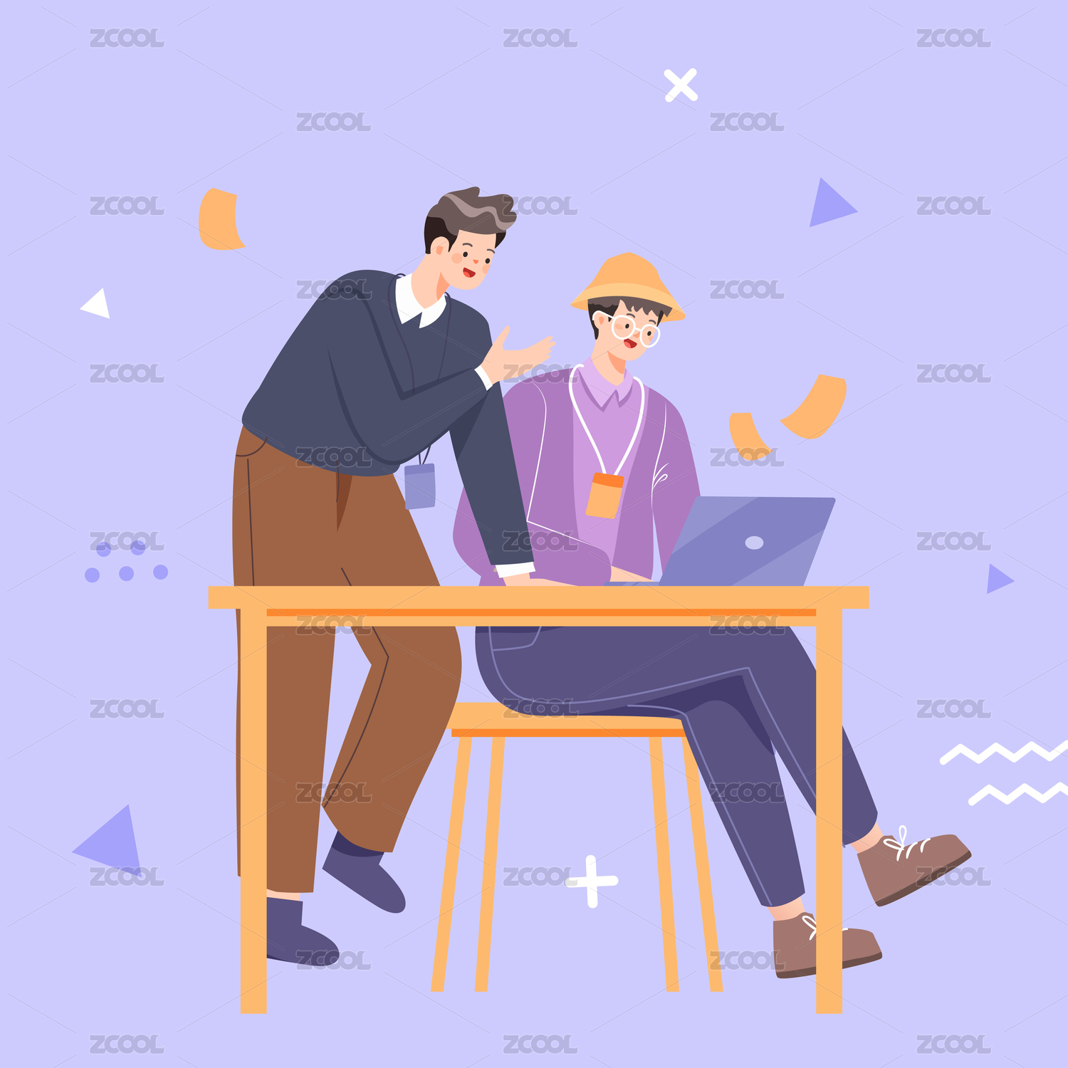 正在上班的男子女子,扁平矢量人物场景创意概念插画