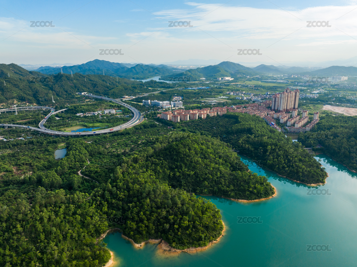 中国广东深圳三洲田水库航拍风光